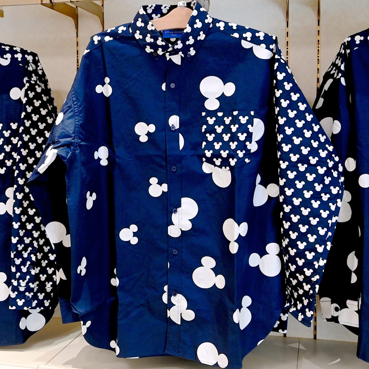 ネイビーカラーにミッキーマークがオシャレに配置されたシャツ。