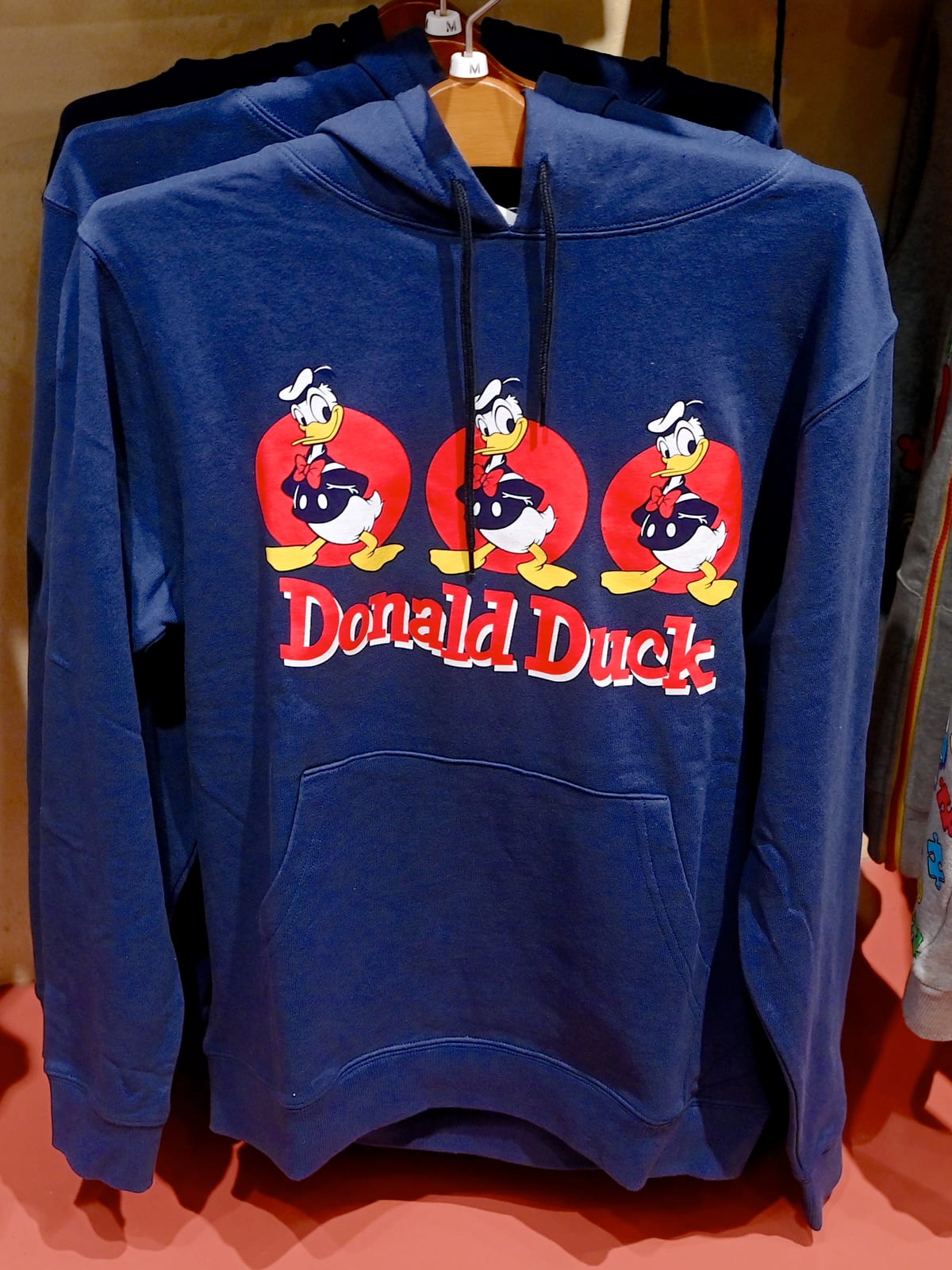 クラシックなドナルドダックがデザインされたネイビーのパーカー。