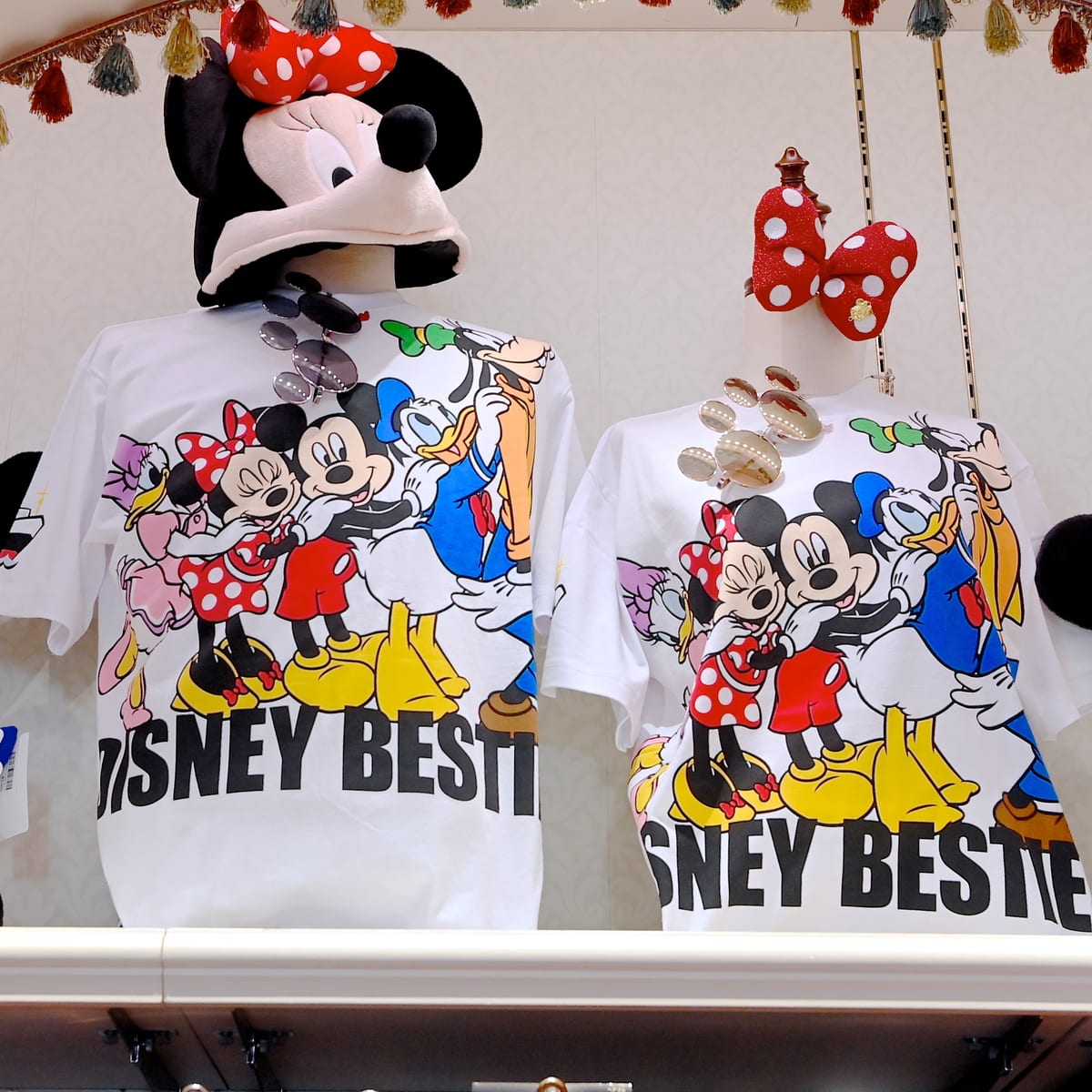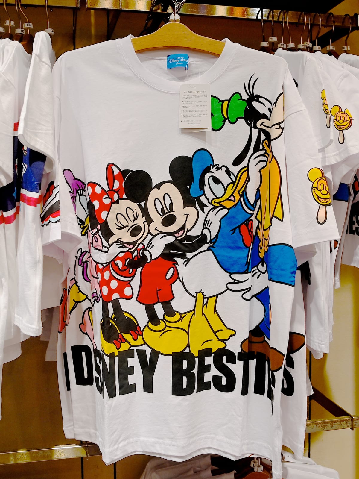 東京ディズニーランド、東京ディズニーシーではディズニーキャラクターモチーフのTシャツ、パーカーを種類豊富に販売中!