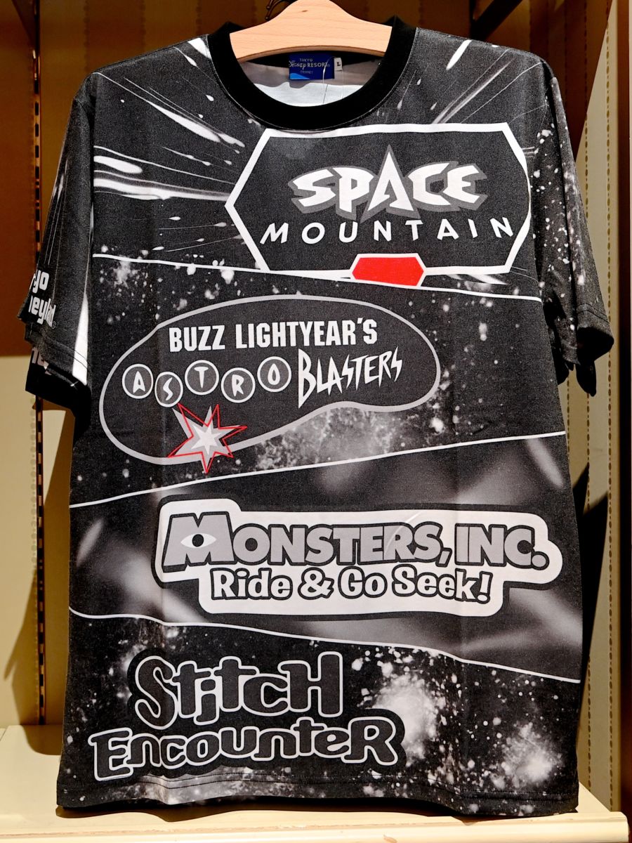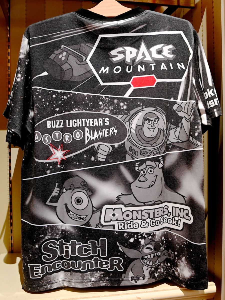 前面は、「スペース・マウンテン」「バズ・ライトイヤーのアストロブラスター」「モンスターズ・インク“ライド&ゴーシーク!”」「スティッチ・エンカウンター」のロゴ、