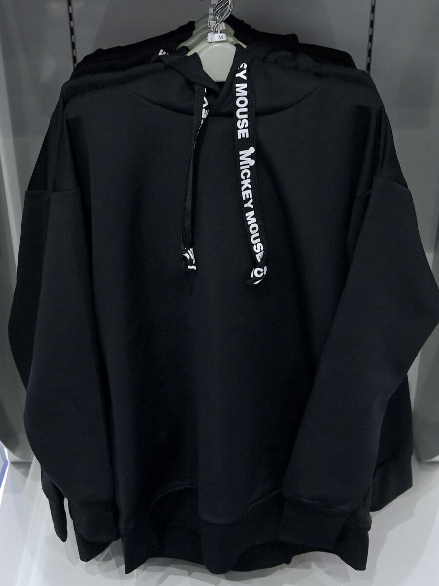 ミッキーマウスのお耳付きフード、BIGシルエットがかわいいブラックパーカー。