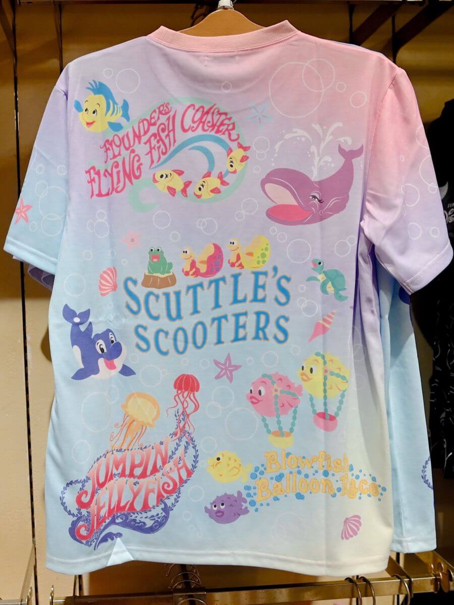 「フランダーのフライングフィッシュコースター」、ショップを営むクジラ、「アリエルのプレイグラウンド」のイルカ、「スカットルのスクーター」、「ジャンピン・ジェリーフィッシュ」「ブローフィシュ・バルーンレース」がデザインされています。