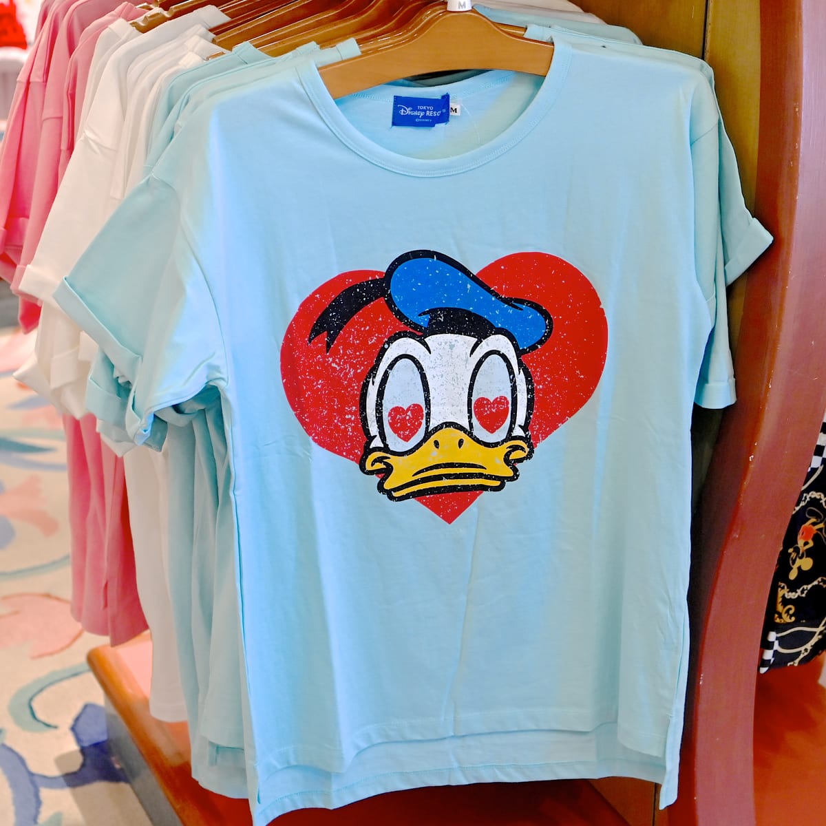 お目々をハートにしたドナルドダックのお顔がデザインされたTシャツ。