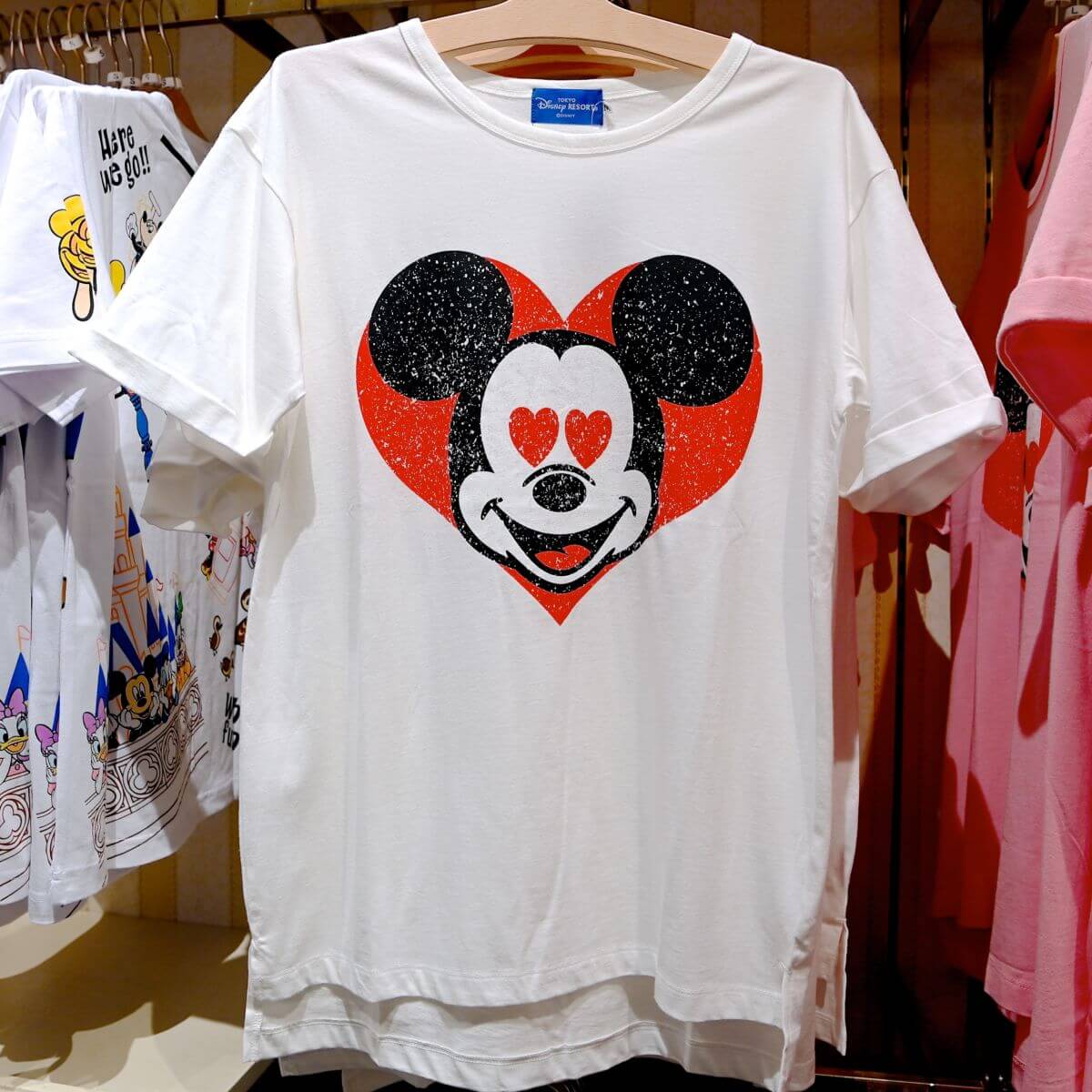 お目々をハートにしたミッキーマウスのお顔がデザインされたTシャツ。