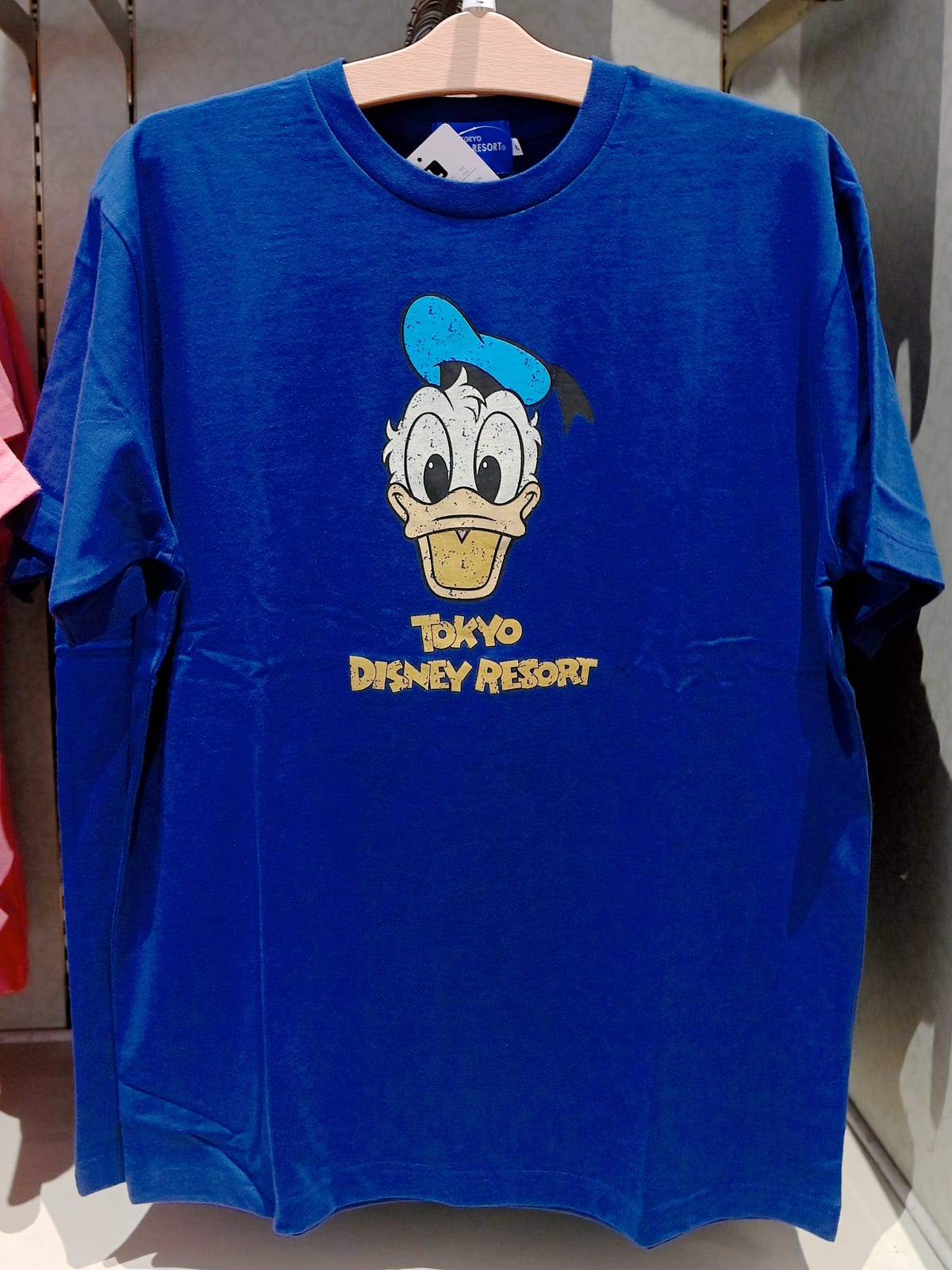 中央にドナルドダックとデザインされたブルーのTシャツ。