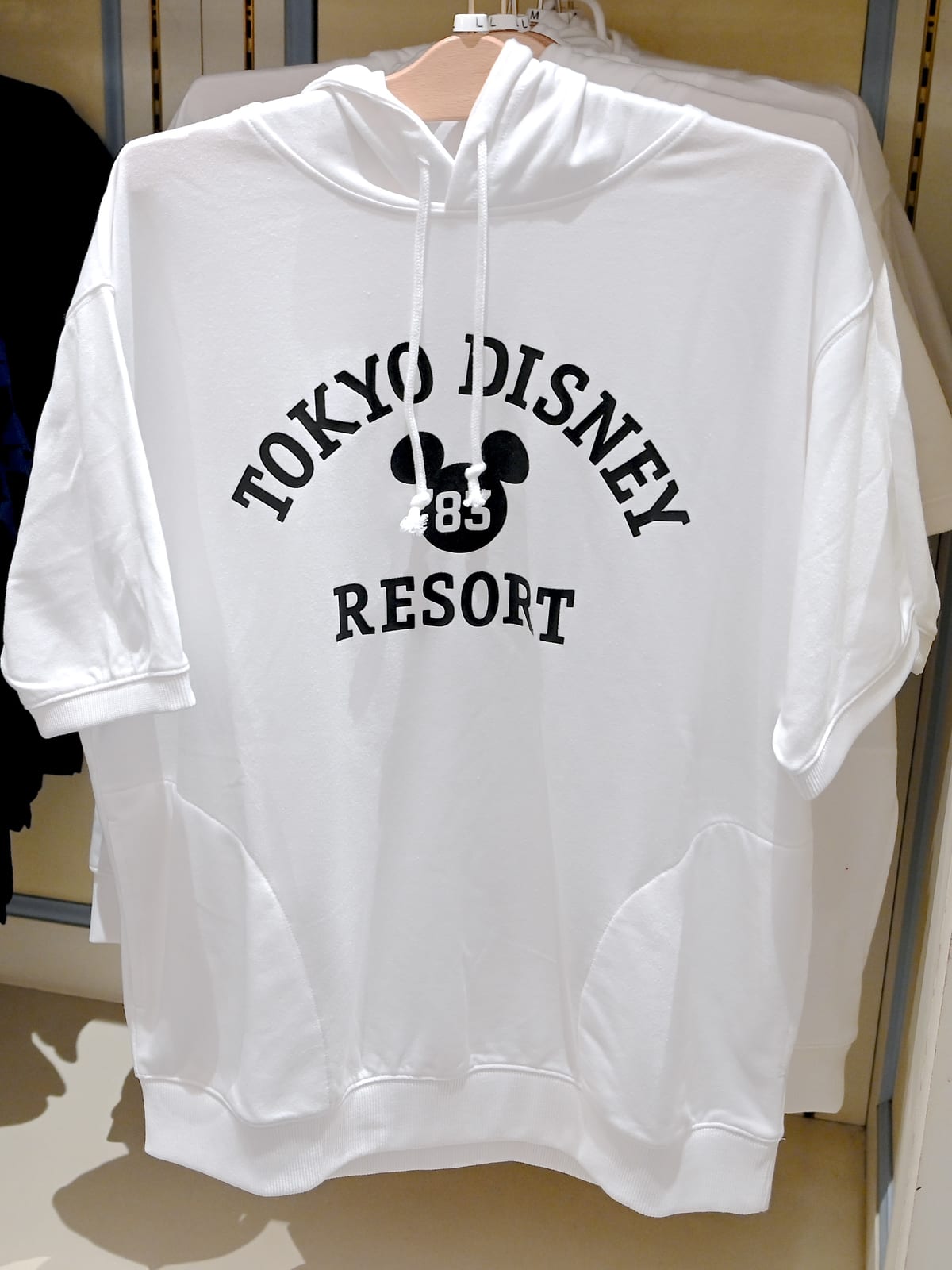 シンプルなミッキーマークに東京ディズニーランドがオープンした83の文字がデザインされたパーカーシリーズに半袖が追加で登場!