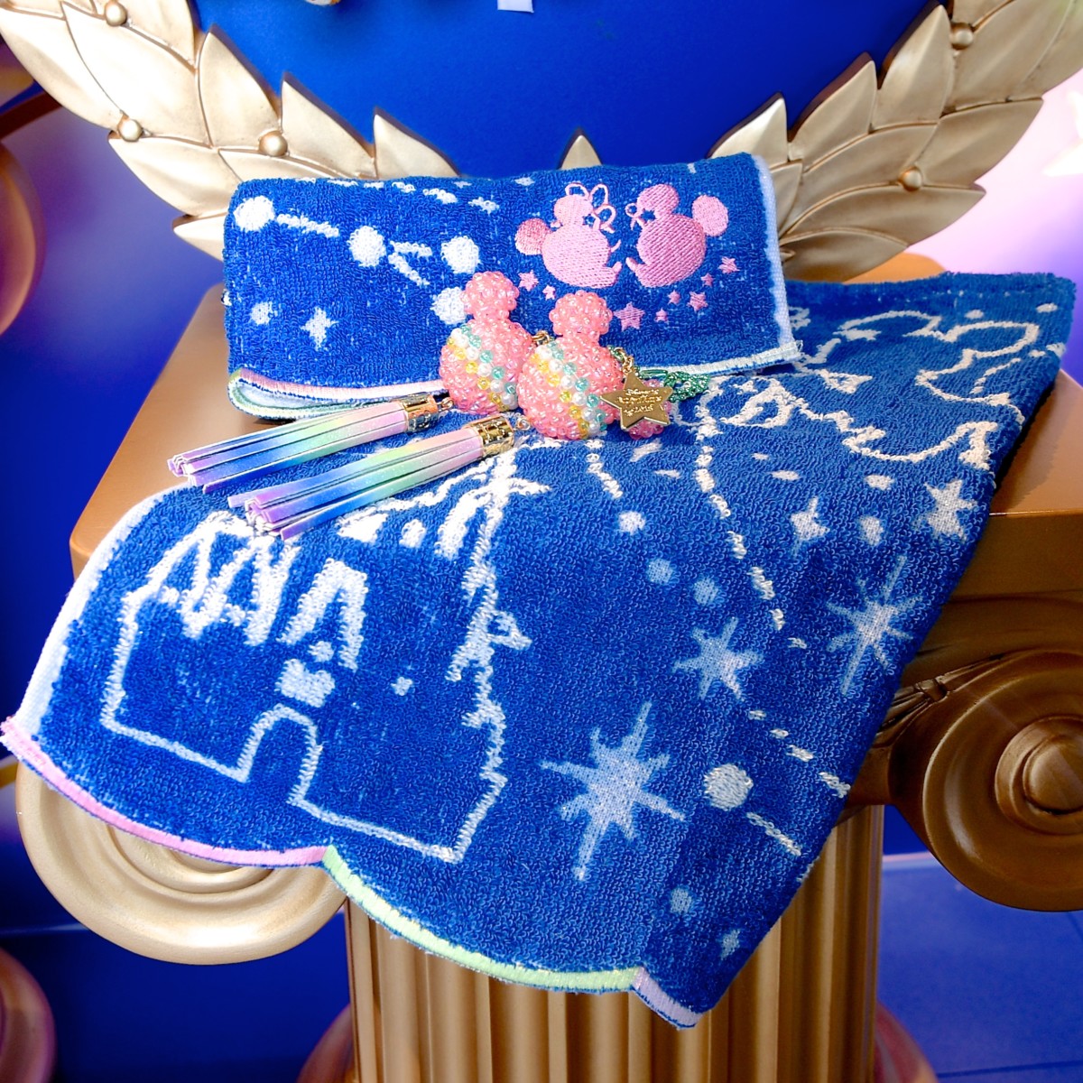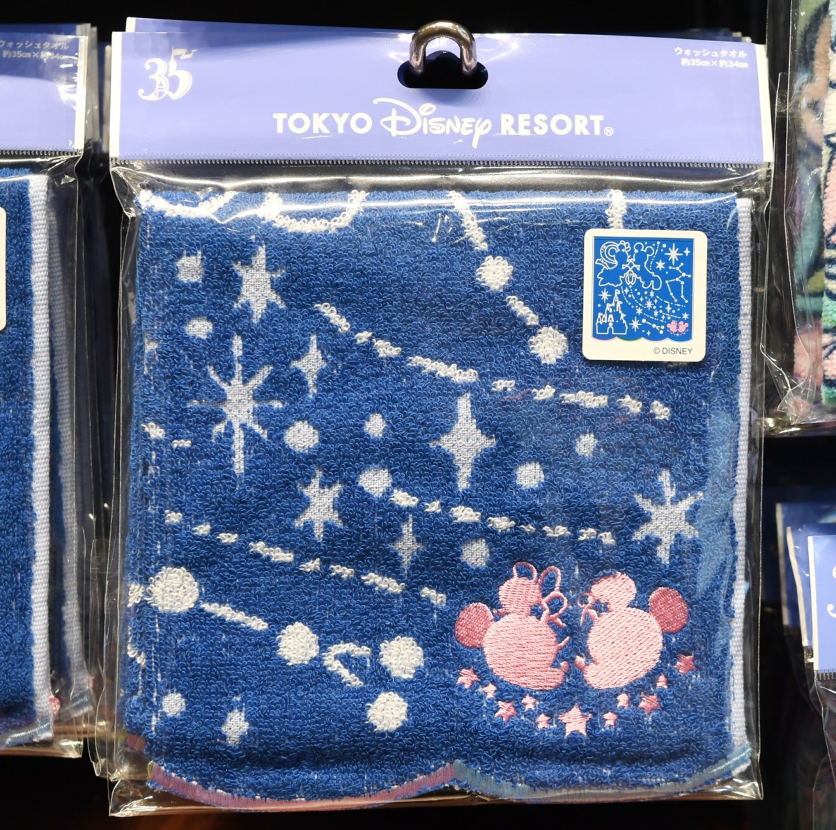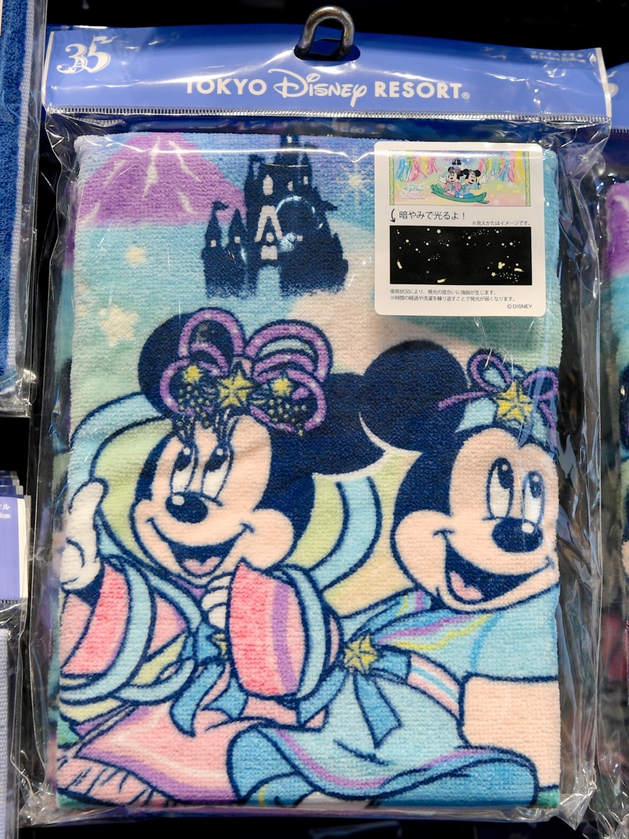 ミッキー&ミニー、シンデレラ城などの星座がデザインされたウォッシュタオル。