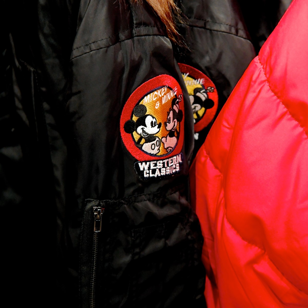 ミッキーとミニーのワッペンがついたおしゃれなGジャン。