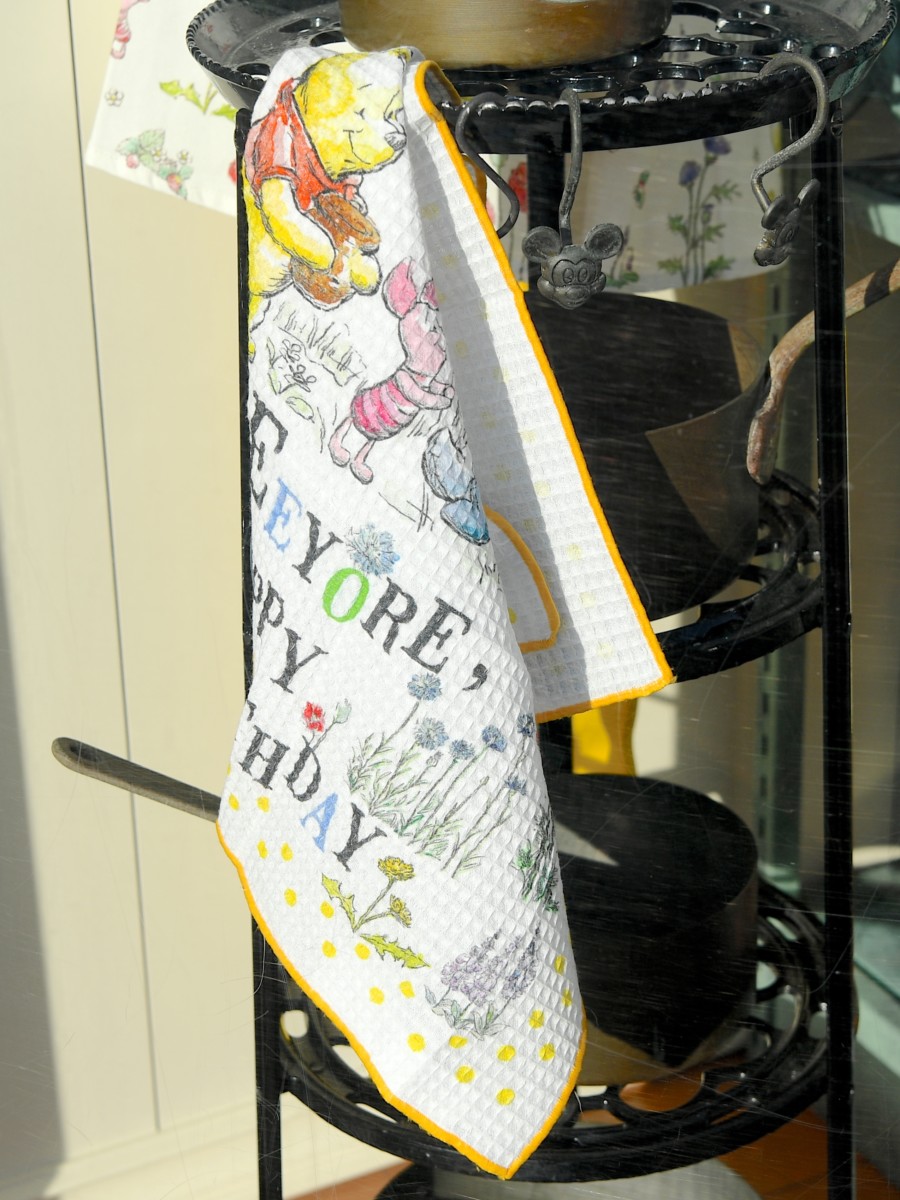 イーヨーハッピーバースデー☆デザインのキッチンクロス。