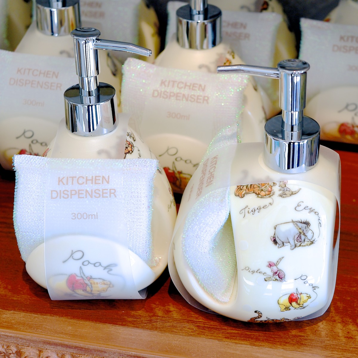 お手紙を書くプーさんたちがデザインされたディスペンサー。