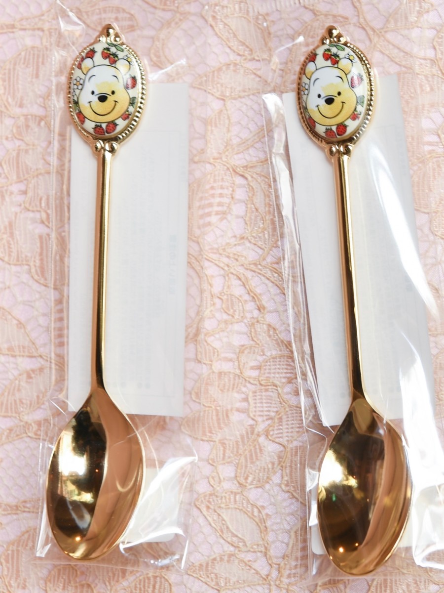 プーさんのお顔といちごがデザインされたスプーン。