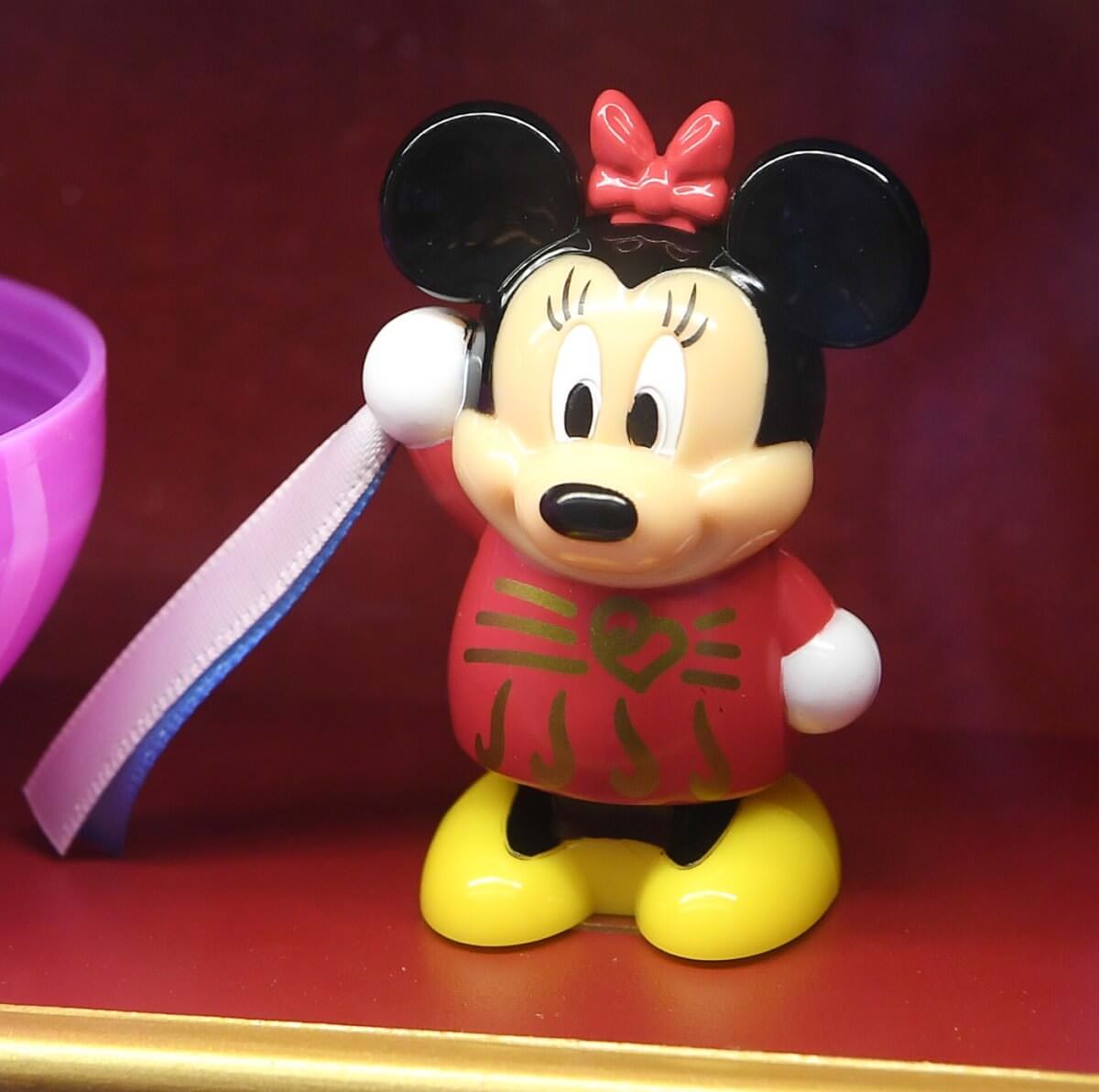 同じくリボンコスチュームのミニーちゃんのゼンマイトイ。