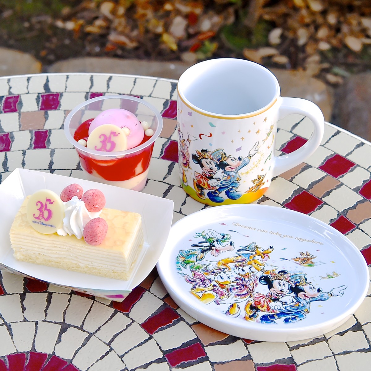 東京ディズニーリゾート35周年“Happiest Celebrationグランドフィナーレ”期間中のお土産にぴったりなスーベニアカップ、スーベニアプレート付きデザート。
