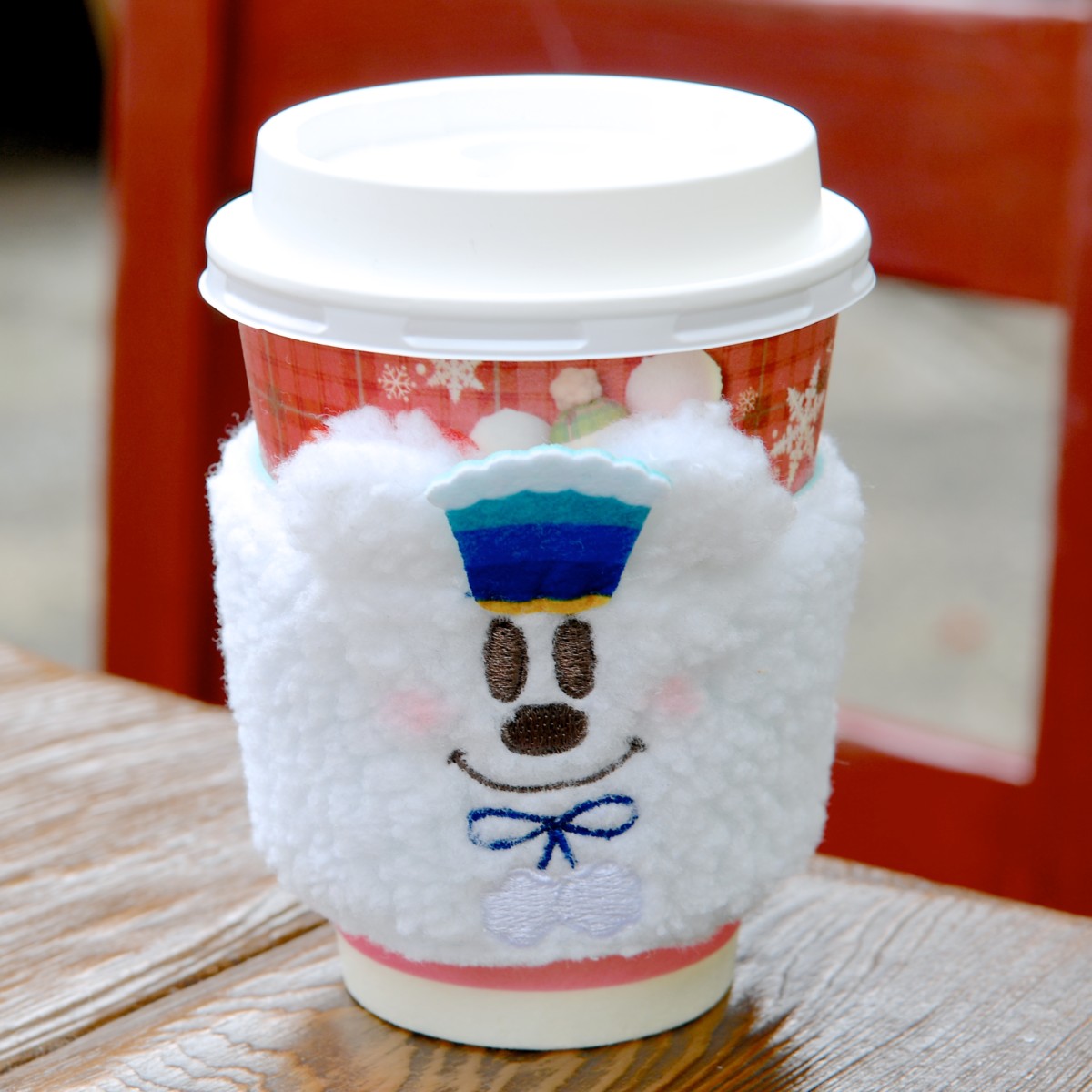 真っ白な「スノーミッキー」がふわもこしたスリーブになっています。