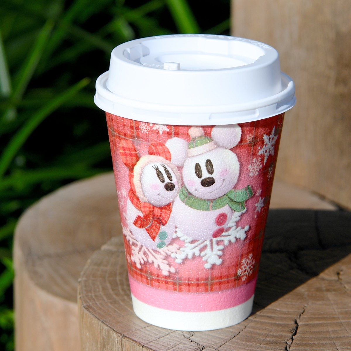 カップも「スノーミッキー」と「スノーミニー」がデザインされた真っ赤なディズニークリスマス仕様になっています。