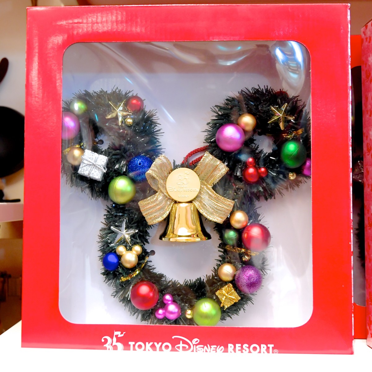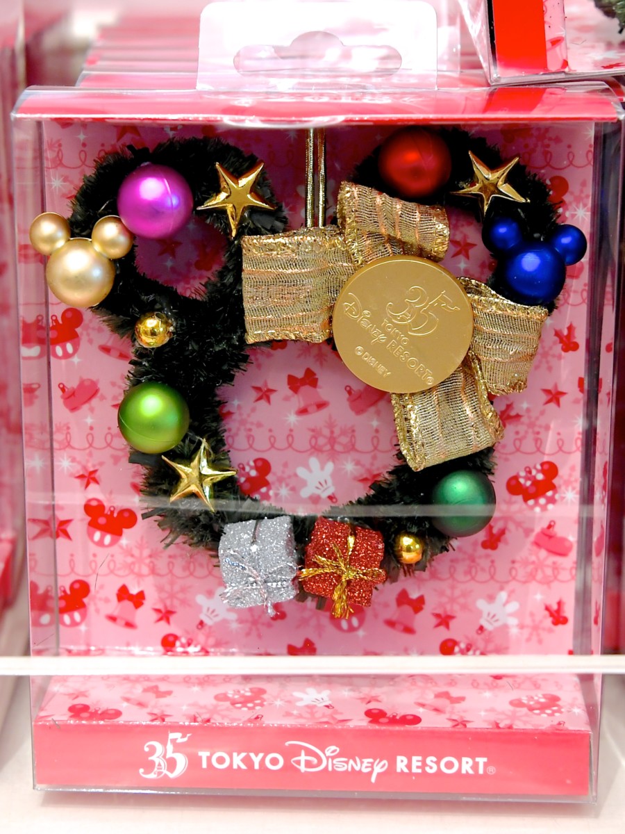 TDR35周年のロゴがデザインされた35周年らしいカラフルなクリスマスリース。