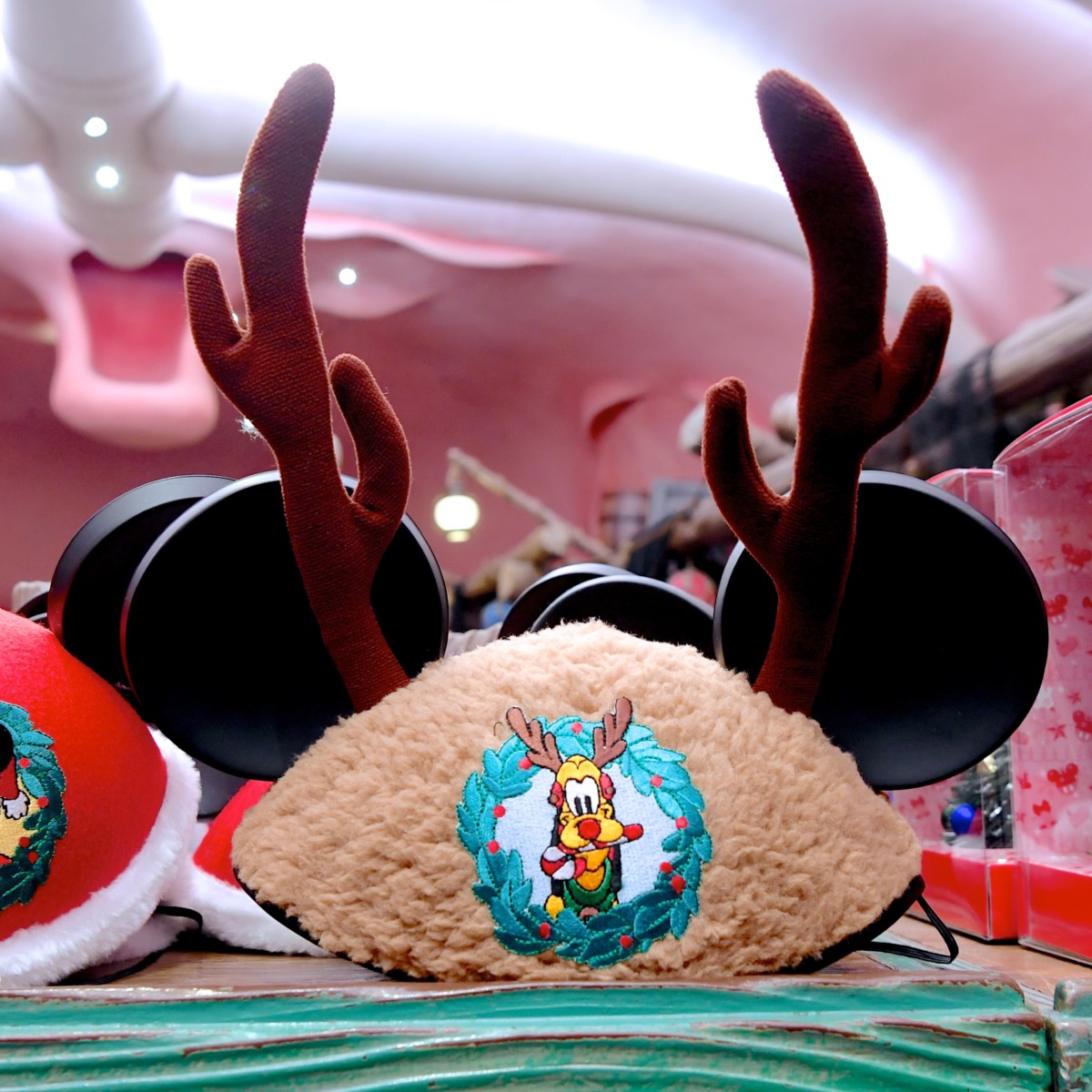 サンタミッキーのイヤーハットとお揃いでかぶりたいトナカイ風プルートのインパクト大なイヤーハットも発売!