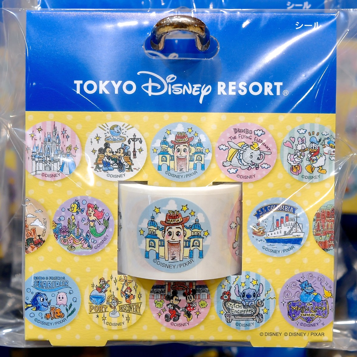 ミッキー&ミニー、トイ・ストーリーマニア!、ダンボ、ドナルド&デイジー、S.S.コロンビア号、ビッグサンダーマウンテンなどがデザインされたシール14絵柄、180枚入り。