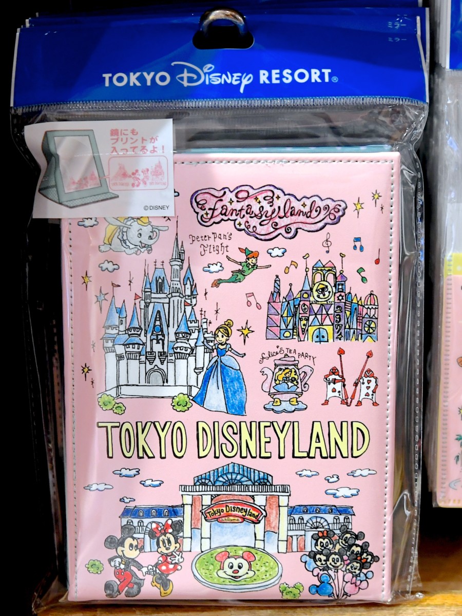 ピンク(東京ディズニーランド)とブルー(東京ディズニーシー)の絵柄が楽しめるスタンドミラー。