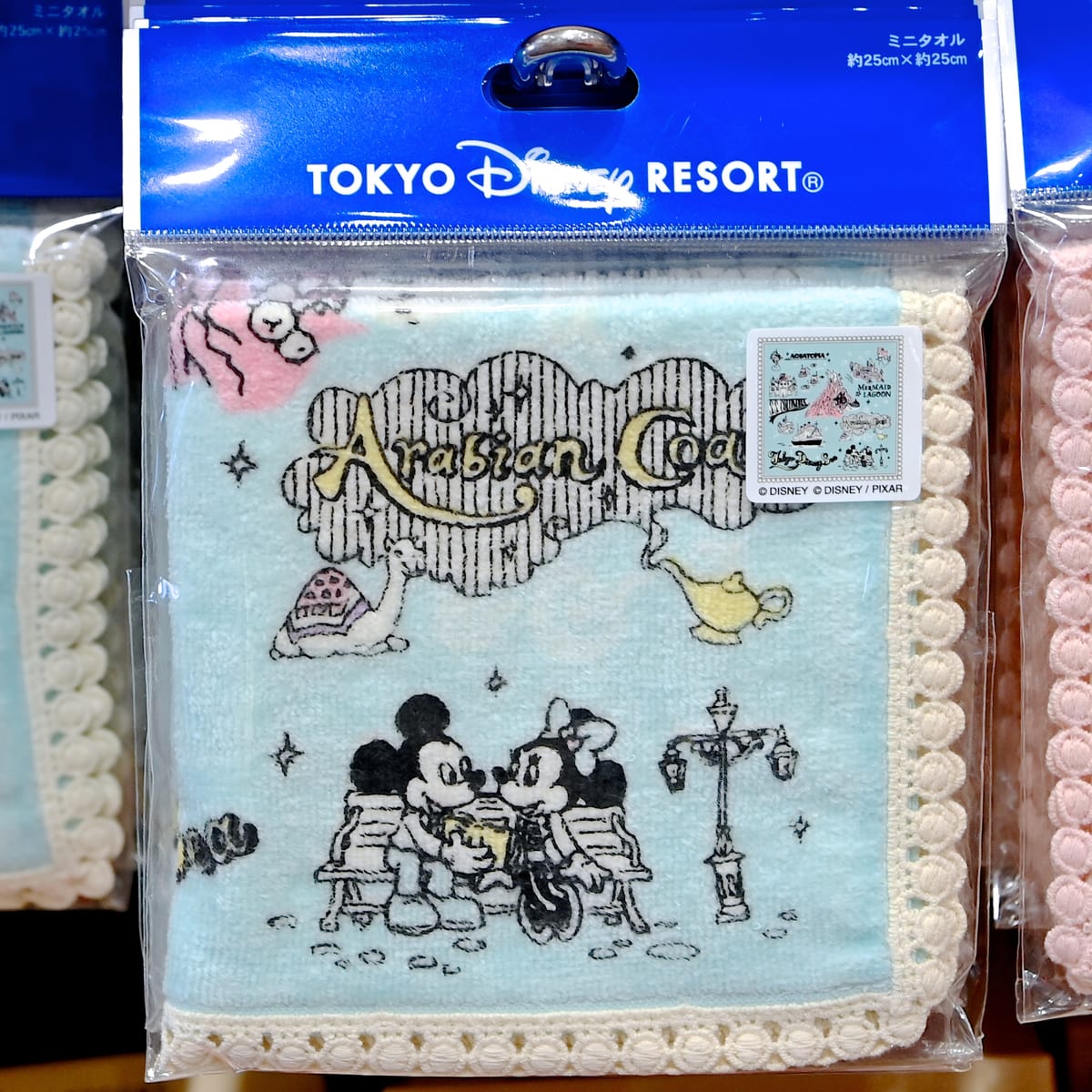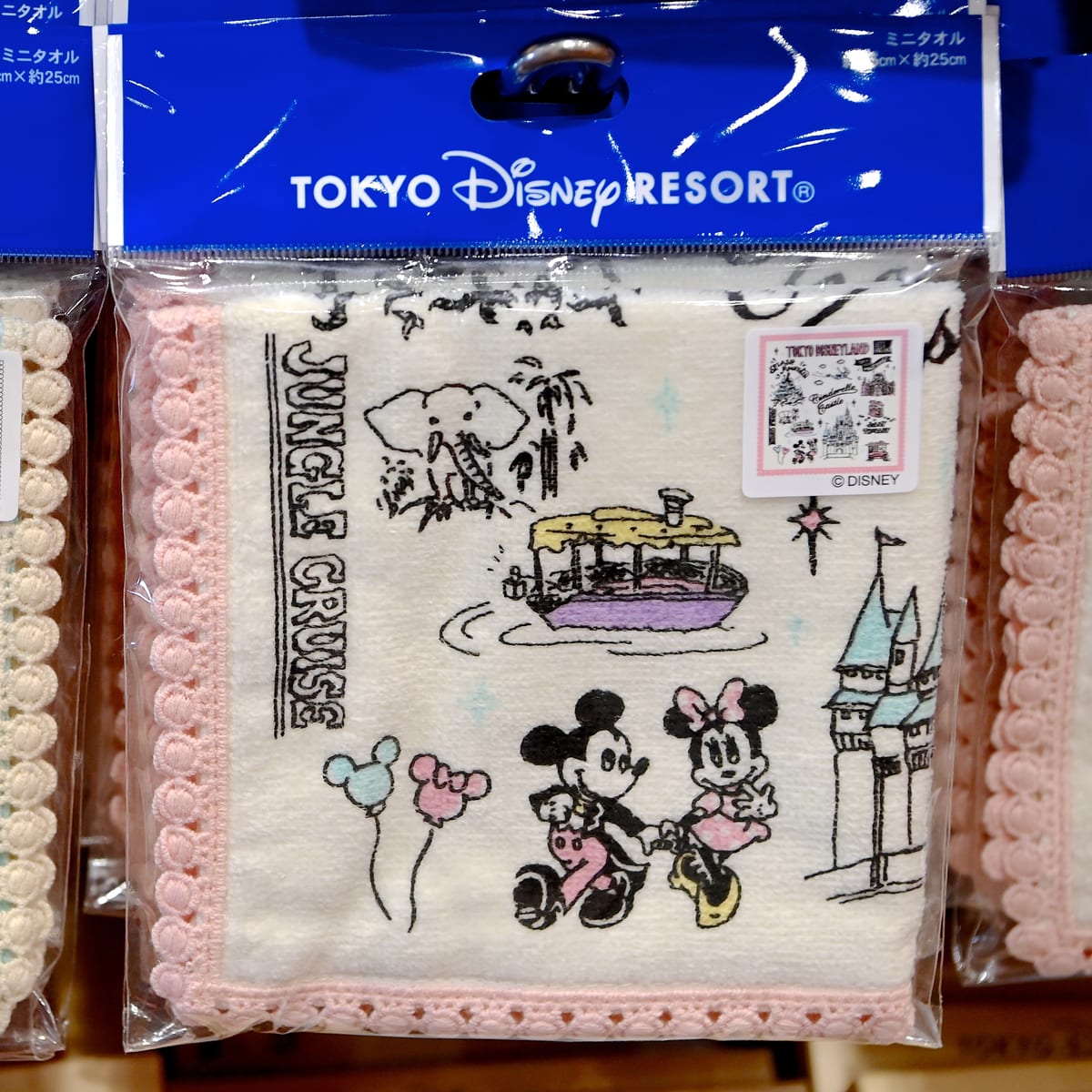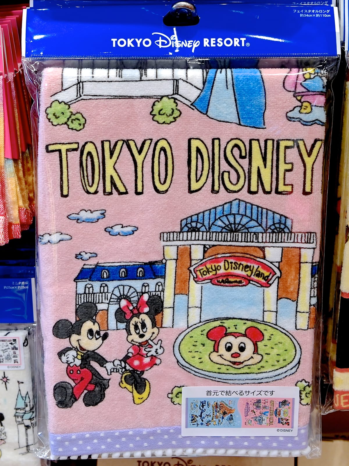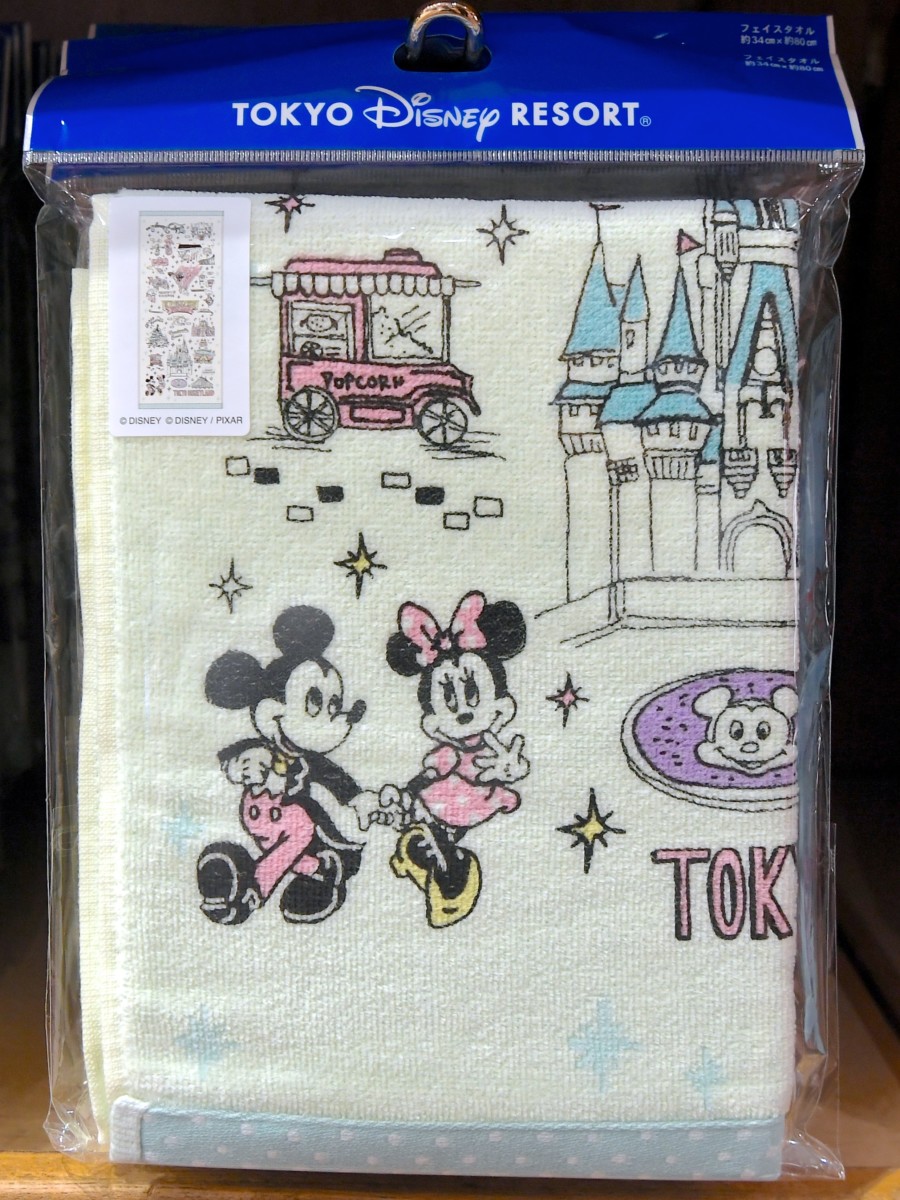 東京ディズニーランド、東京ディズニーシーがデザインされたフェイスタオル。
