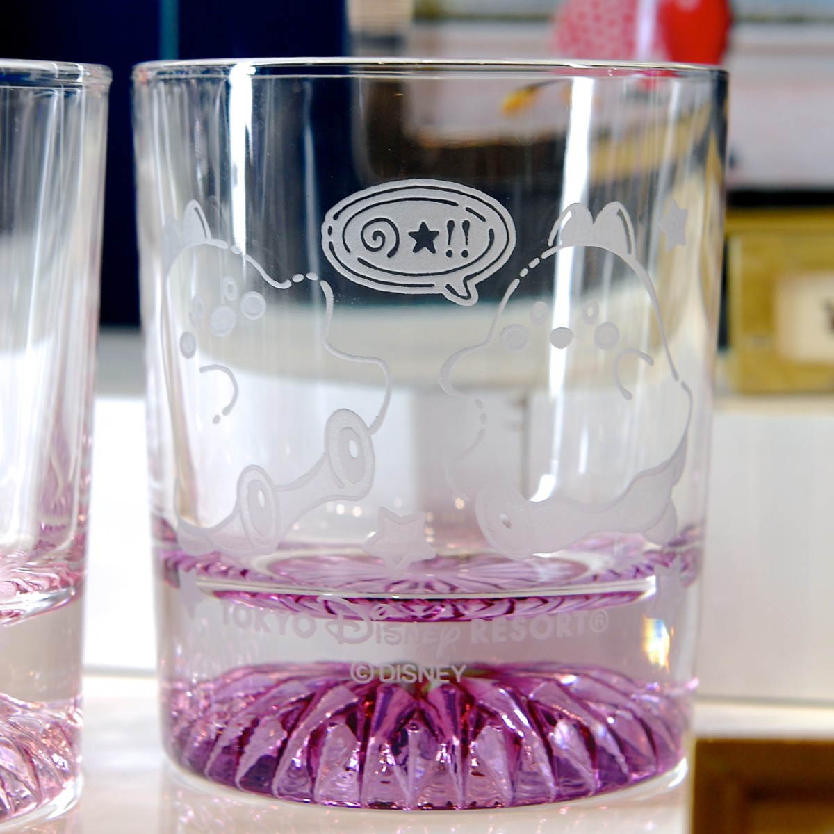 おばけの格好をしたチップとデールのグラスは底が紫色。