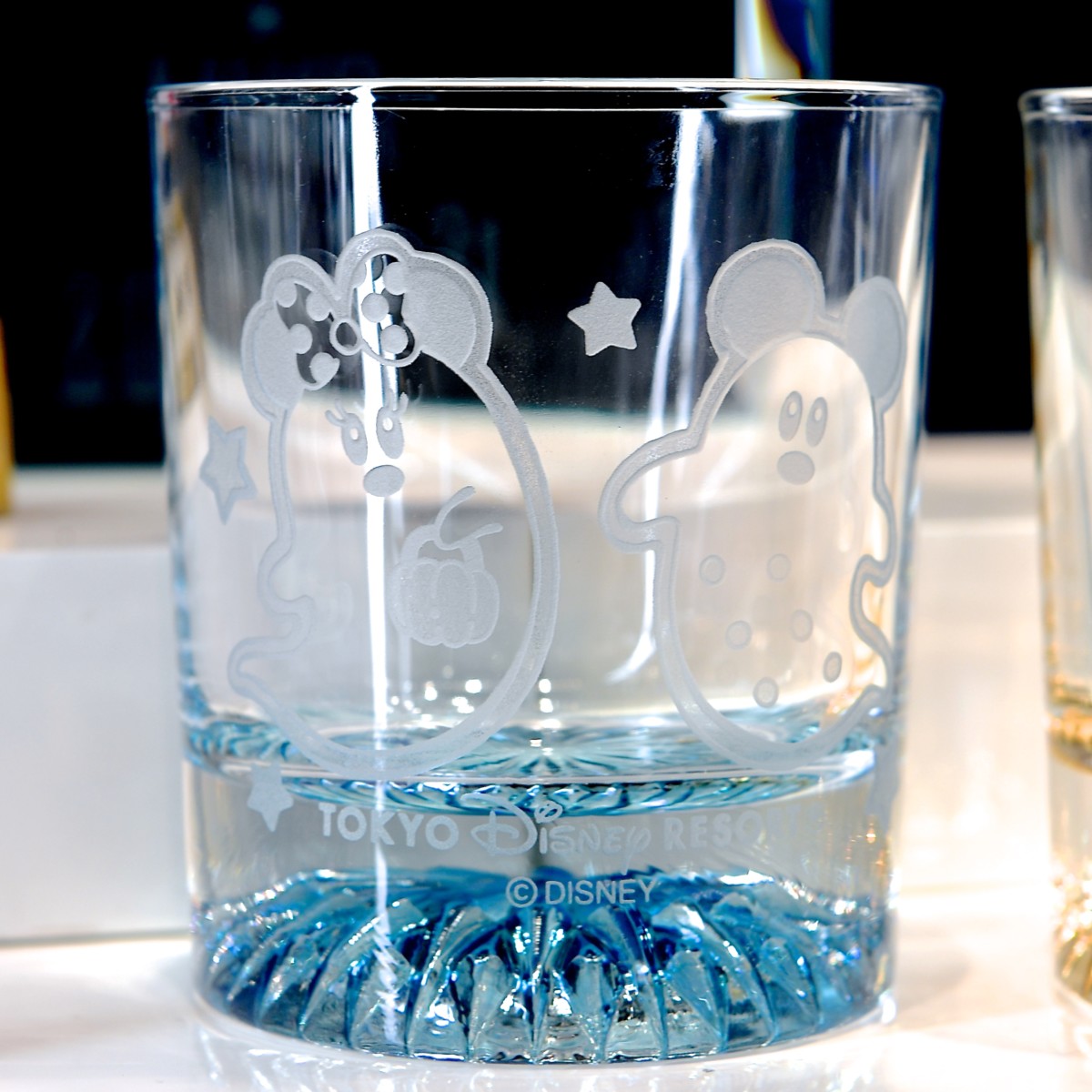 おばけミッキー、ミニーがデザインされたグラスは底が綺麗なブルー。