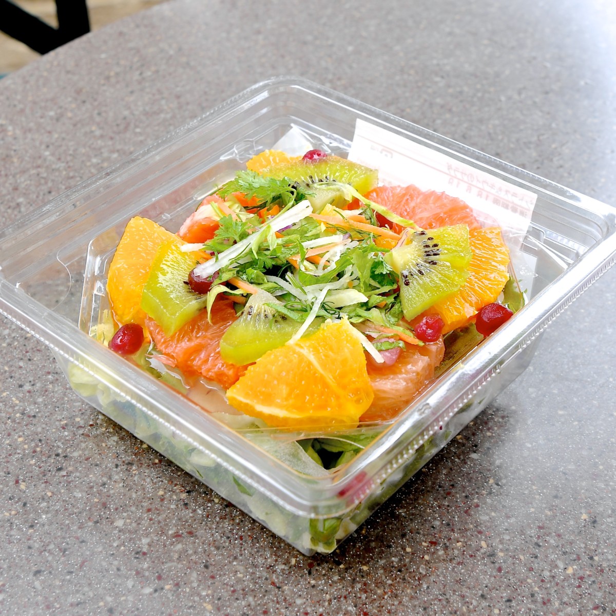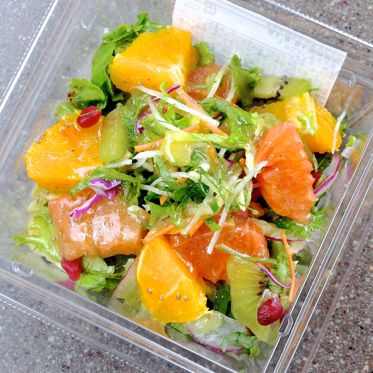 今回は2018年夏に提供されている「シトラス&キウイのサラダ、チアシード入りオレンジ・ジンジャードレッシング」を紹介します☆