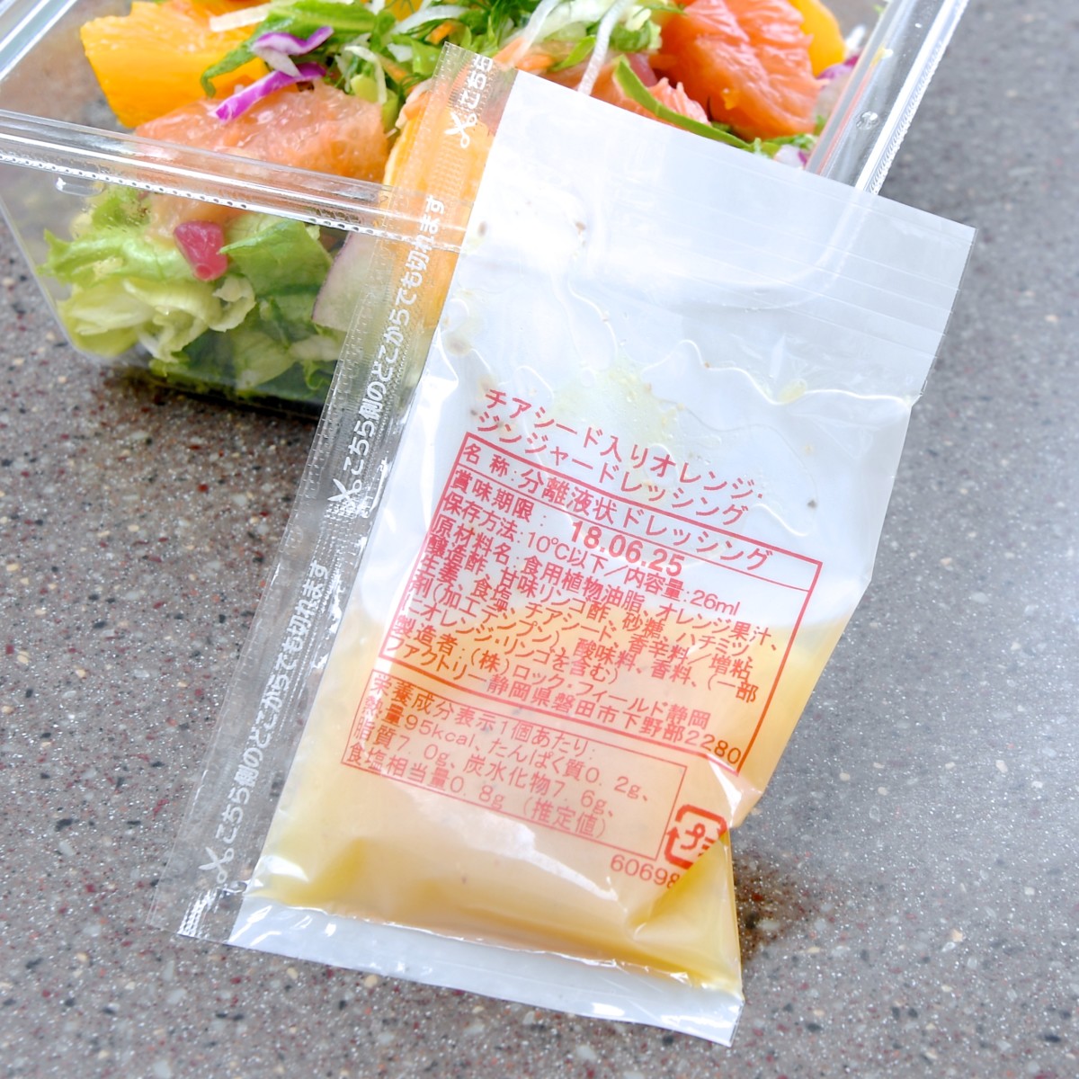シトラス&キウイのサラダ、チアシード入りオレンジ・ジンジャードレッシング 内容