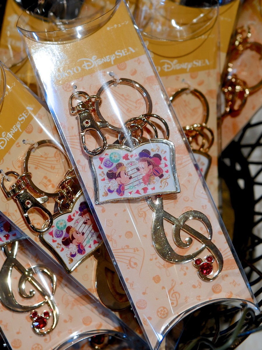 ゴールドの音符と譜面デザインのチャームがついたキーチェーン。