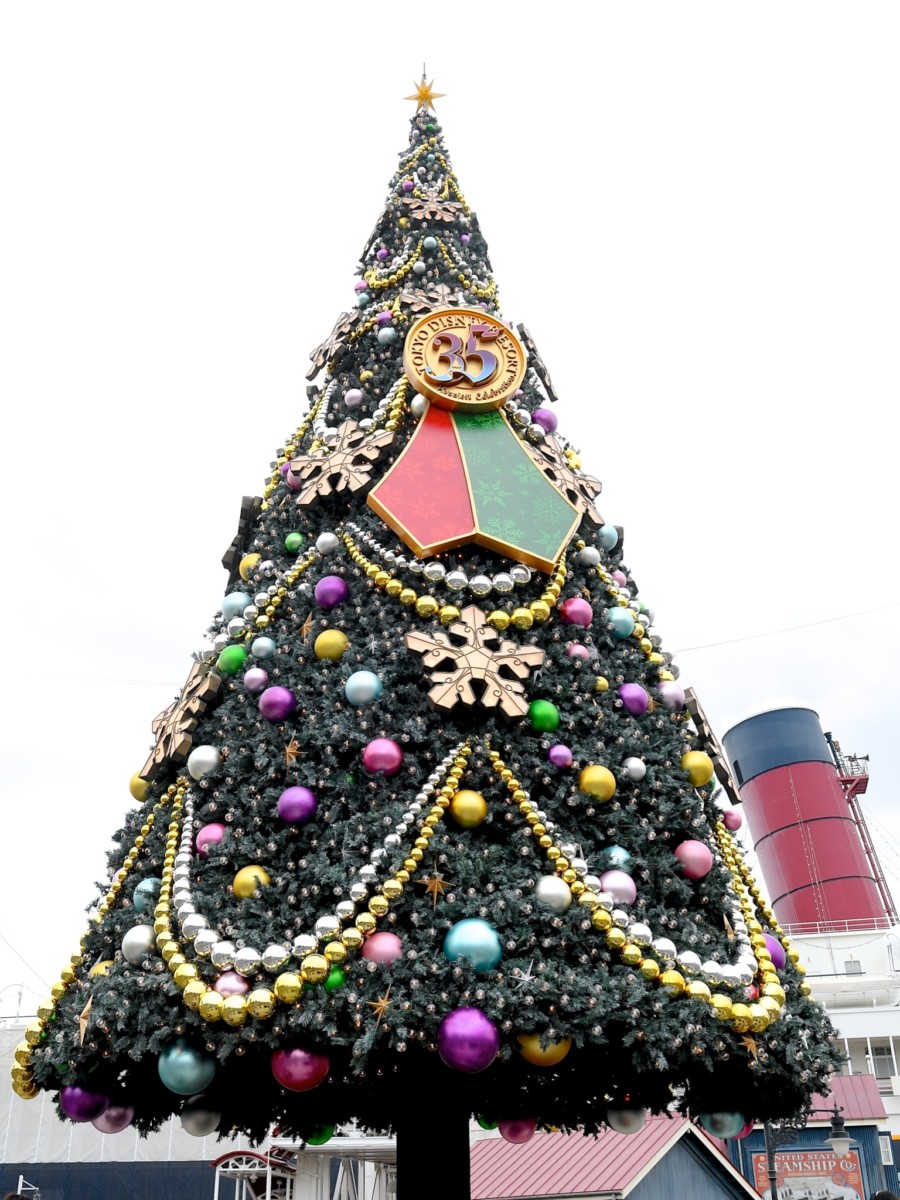 35周年の飾り付けがされたカラフルなクリスマスツリー。