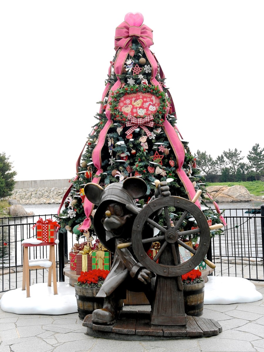 ダッフィー&フレンズのクリスマスツリーはピンクのリボンがかわいい飾り付け。