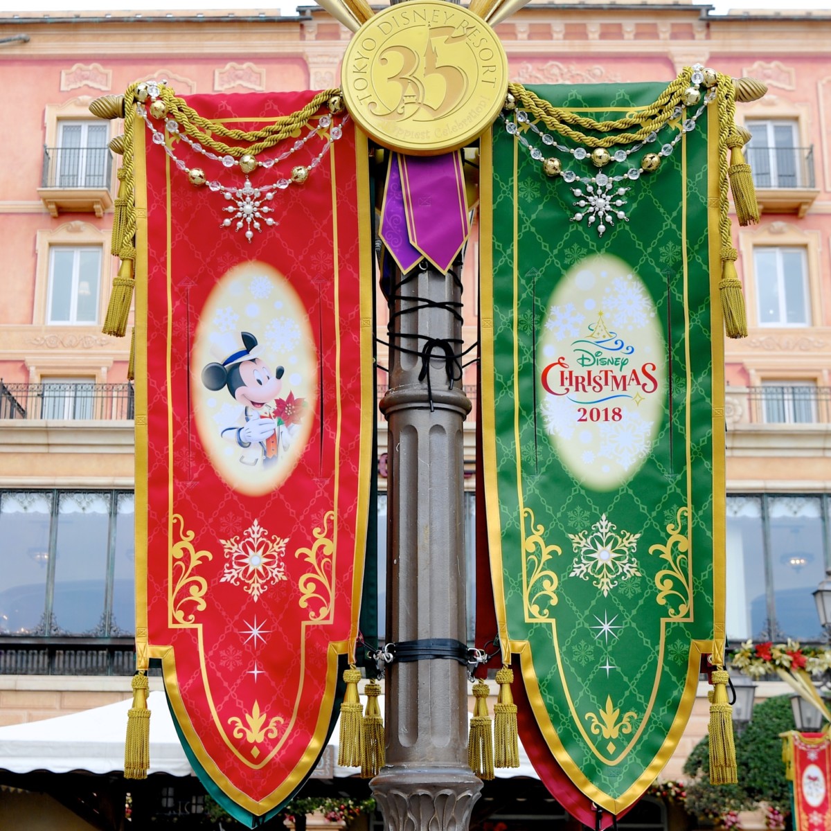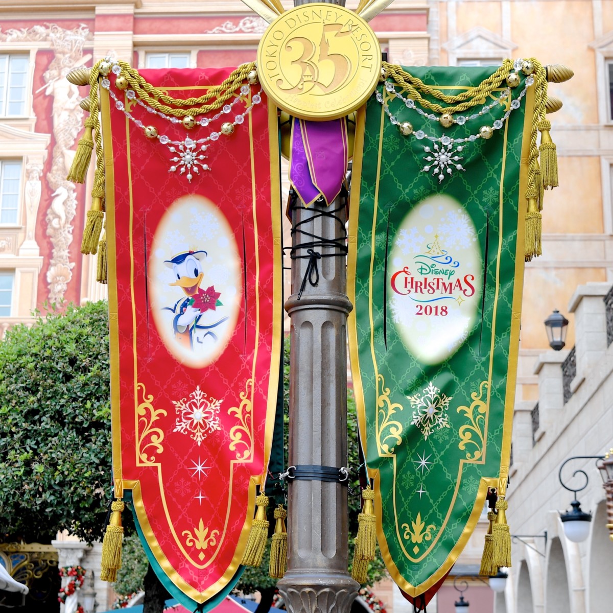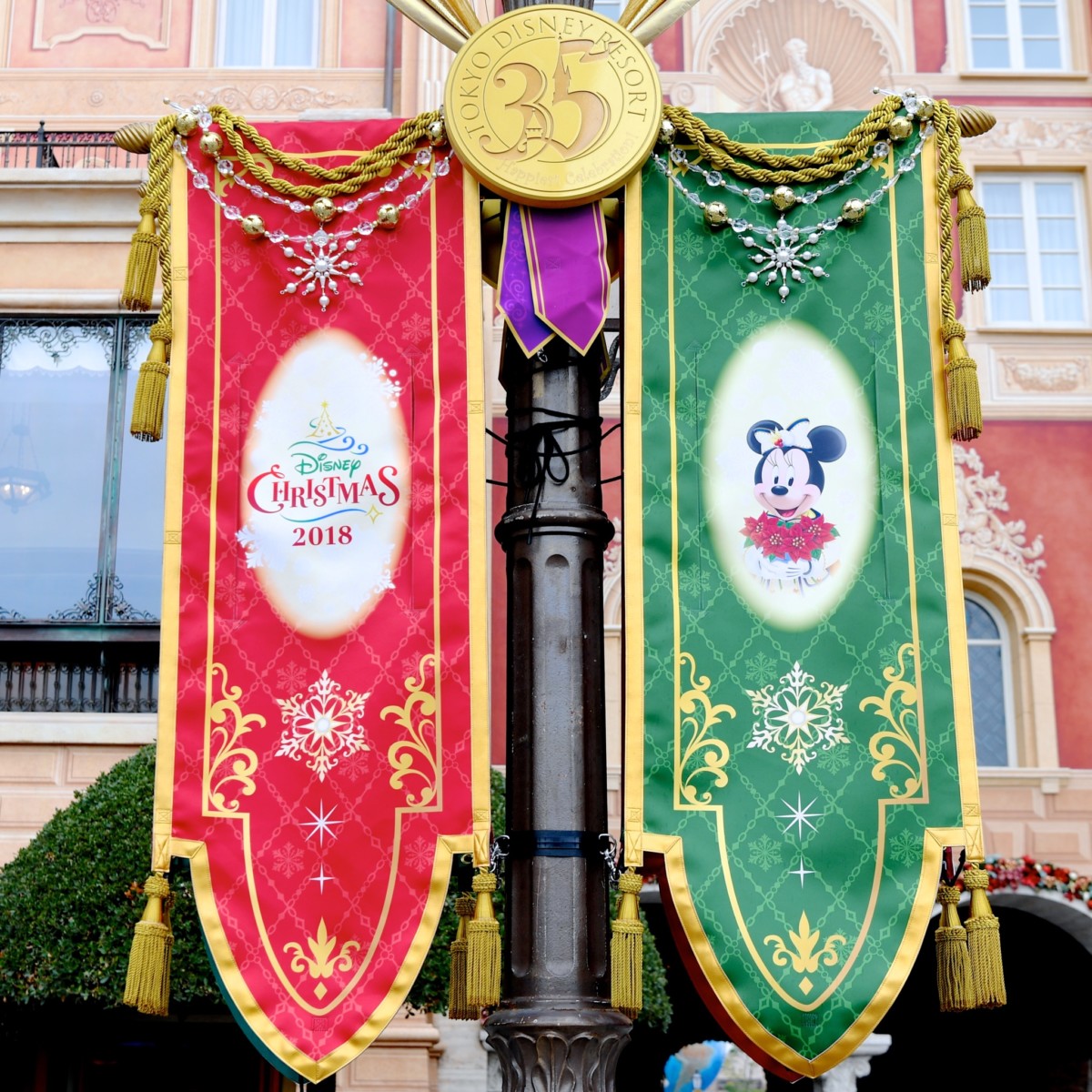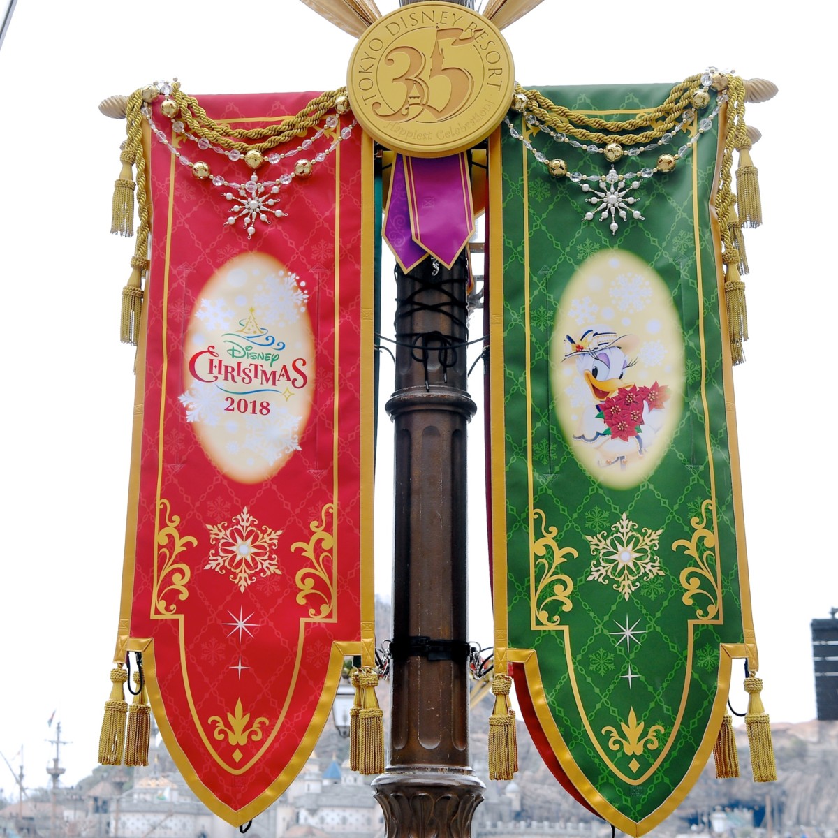 ディズニー・クリスマス2018と東京ディズニーリゾート35周年のロゴもデザインされています。