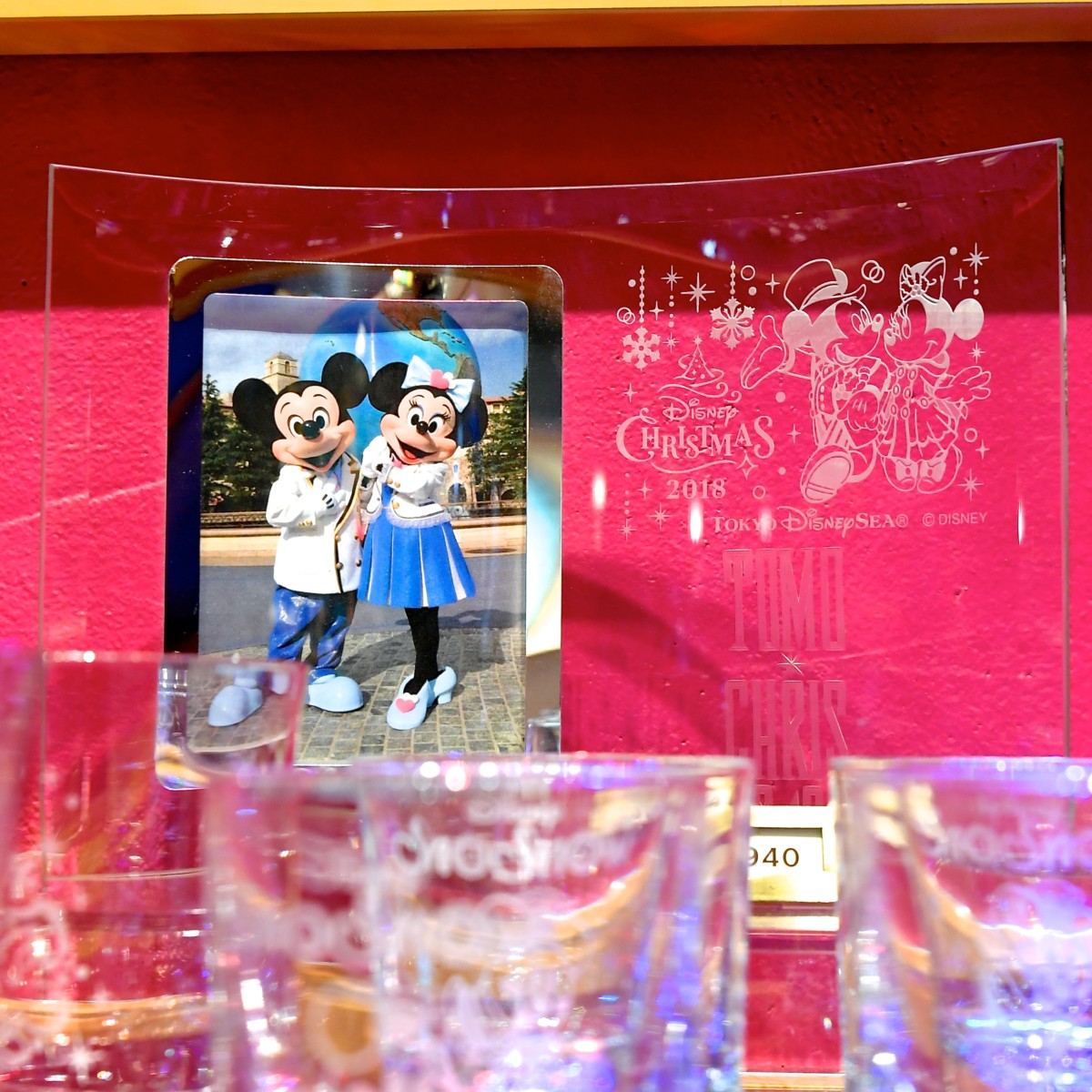 新レビューショー「イッツ・クリスマスタイム!」のミッキーとミニーがデザインされ東京ディズニーシーの“ディズニー・クリスマス2018”に遊びに来た記念にぴったりなガラスグッズ。