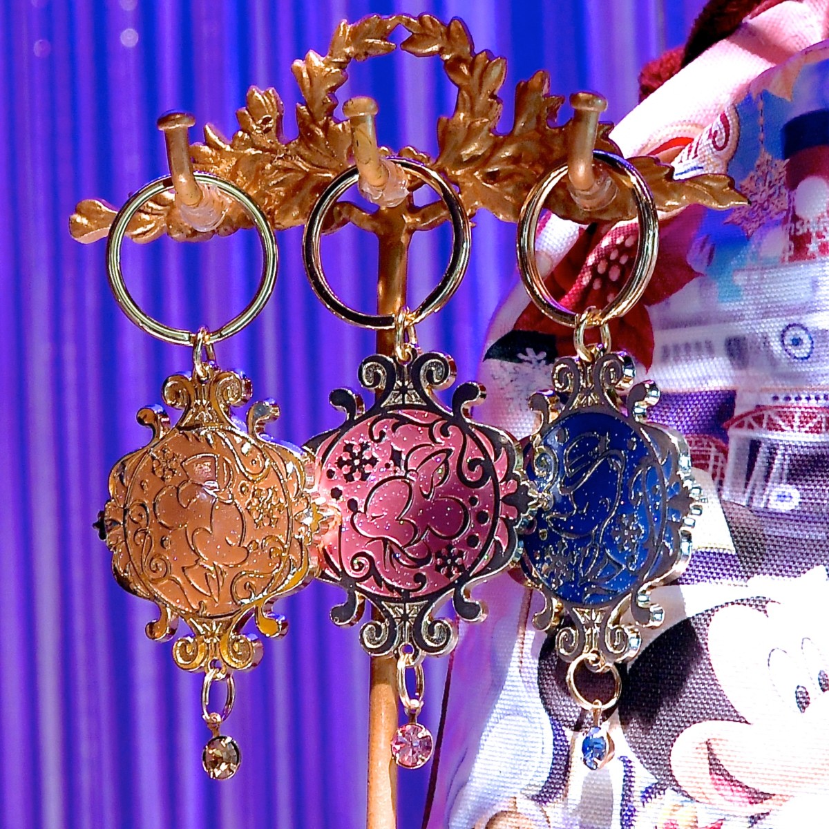 ミッキー、ミニー、ドナルドのおしゃれなラインアートがデザインされたキーチェーンセット。