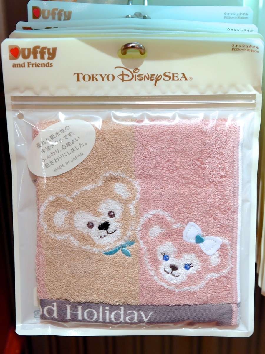 ダッフィーとシェリーメイのお顔がデザインされた今治タオル。