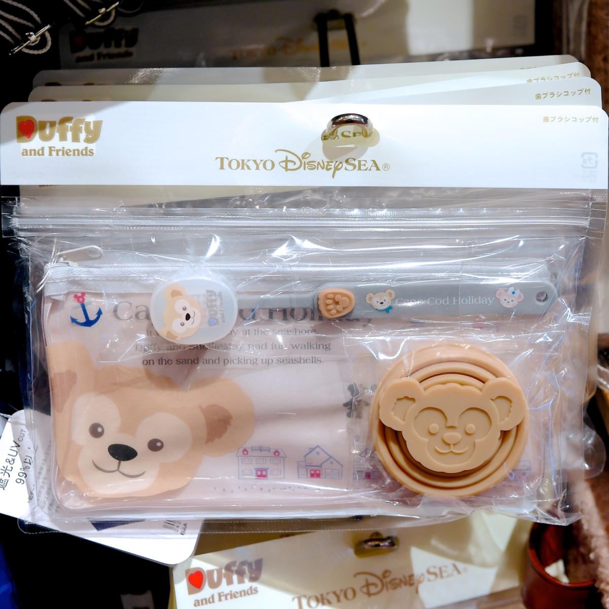 収納に便利なコップにはダッフィーのお顔がデザインされています。