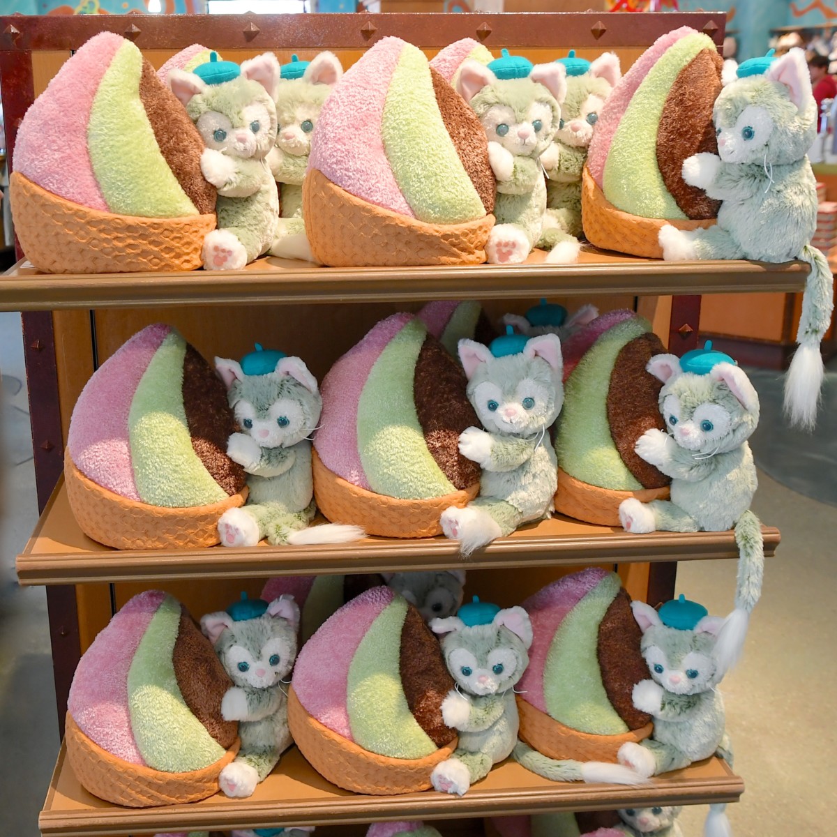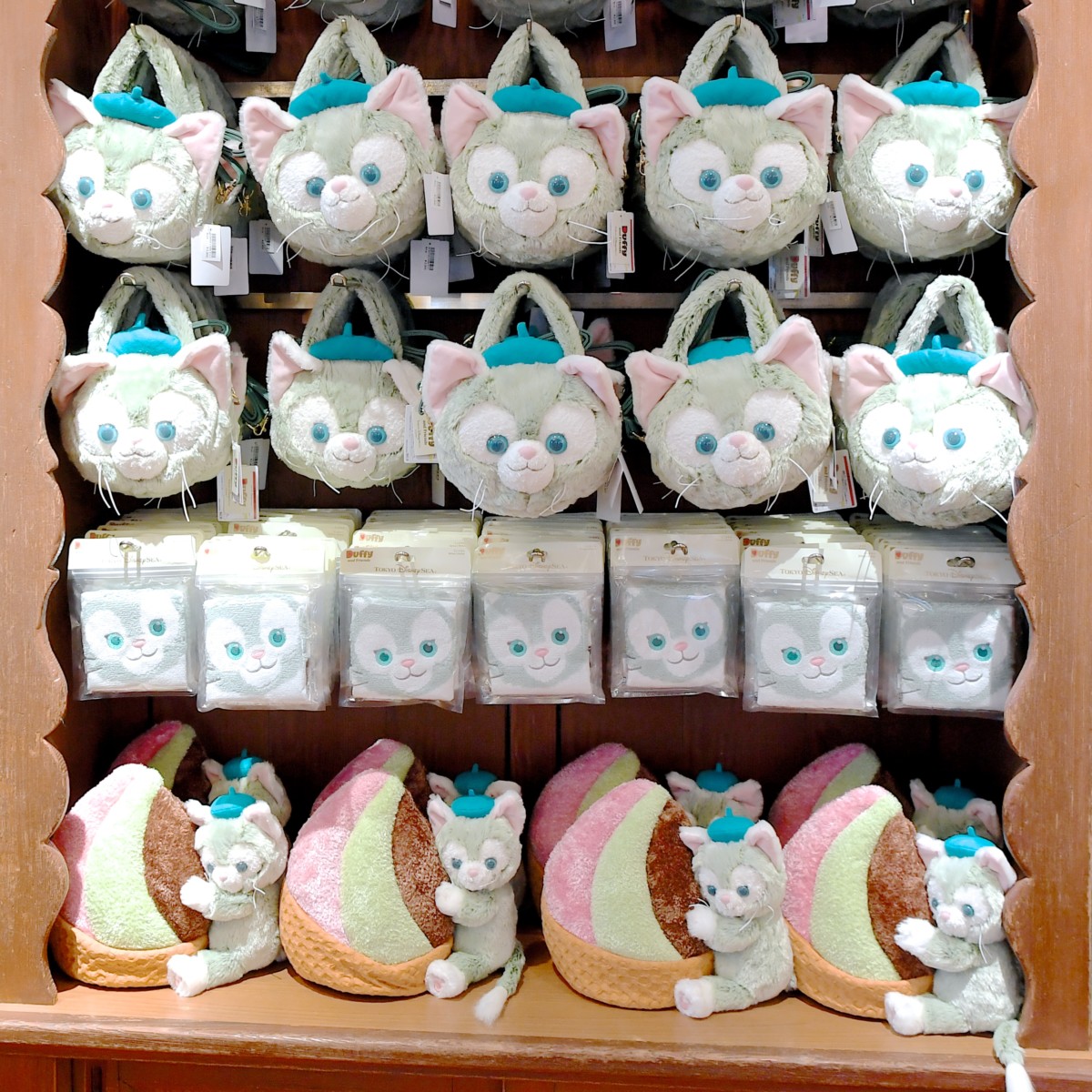ダッフィー・シェリーメイ・ジェラトーニポシェット陳列