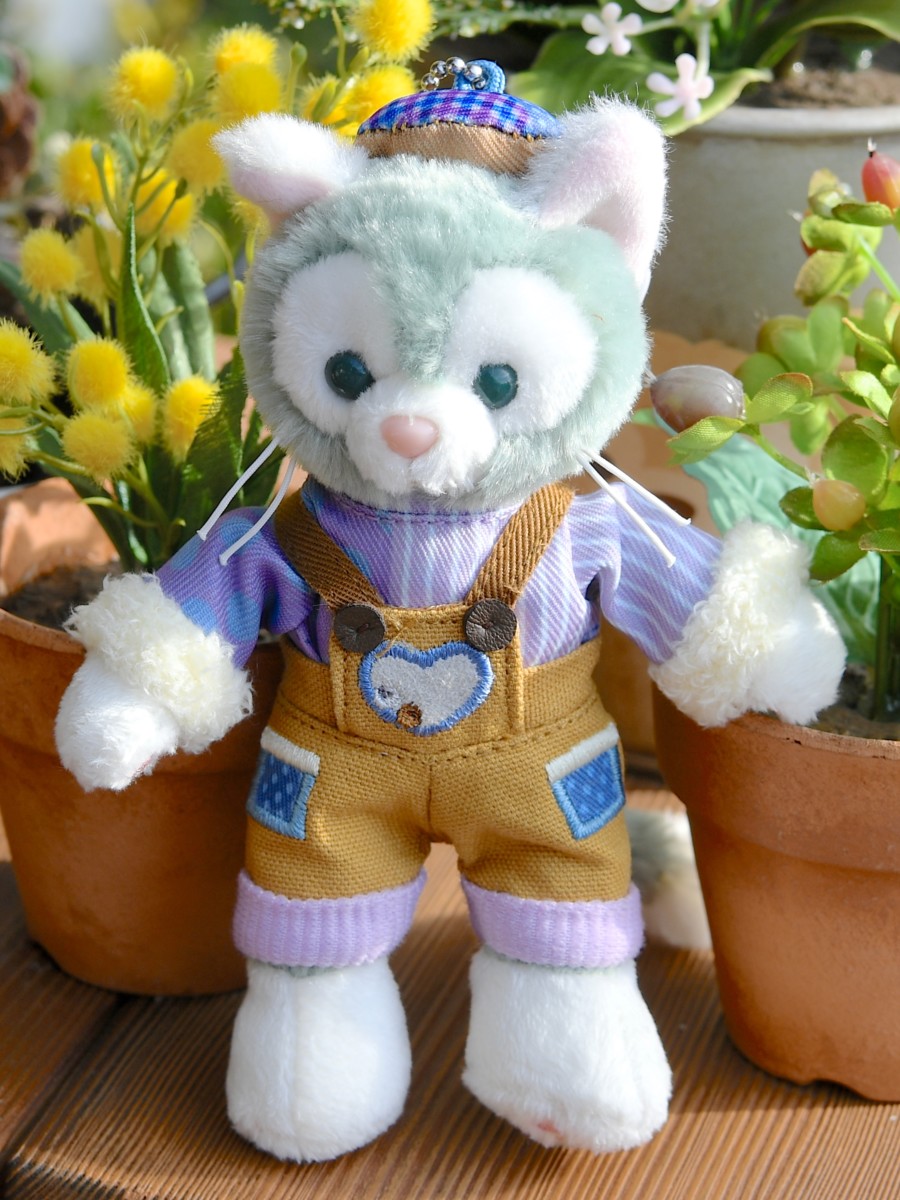 ジェラトーニはジェラトーニカラーのハートがついたサロペット、ベレー帽がポイント。
