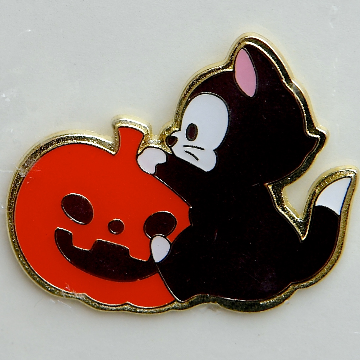 ミニーちゃんの愛猫“フィガロ”とジャック・オー・ランタンがデザインされたピンバッジ。