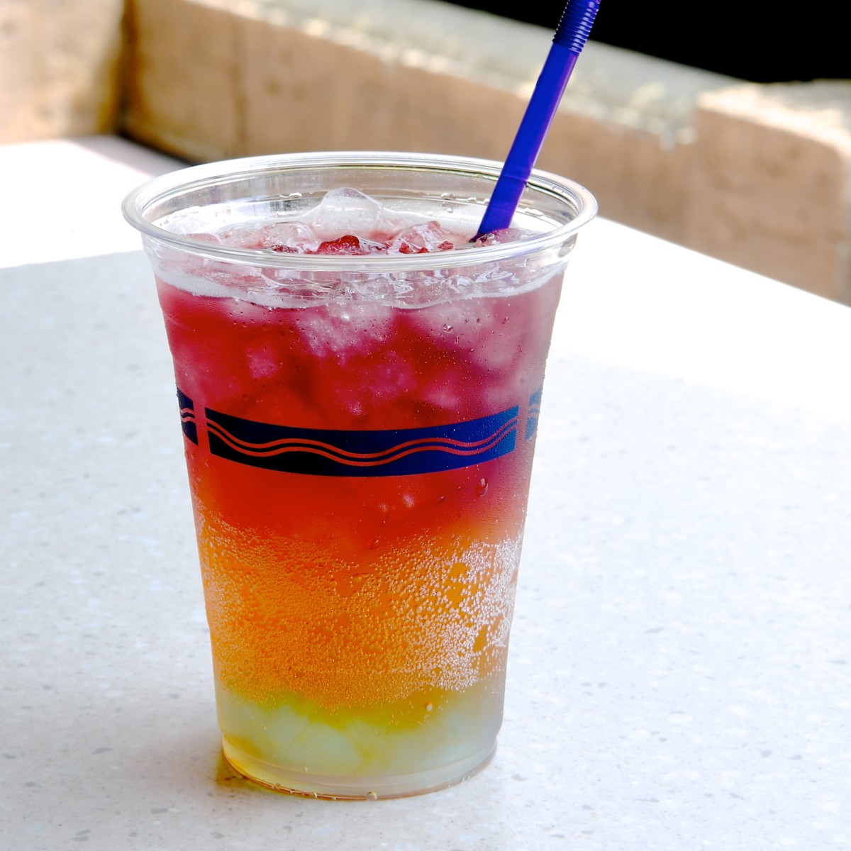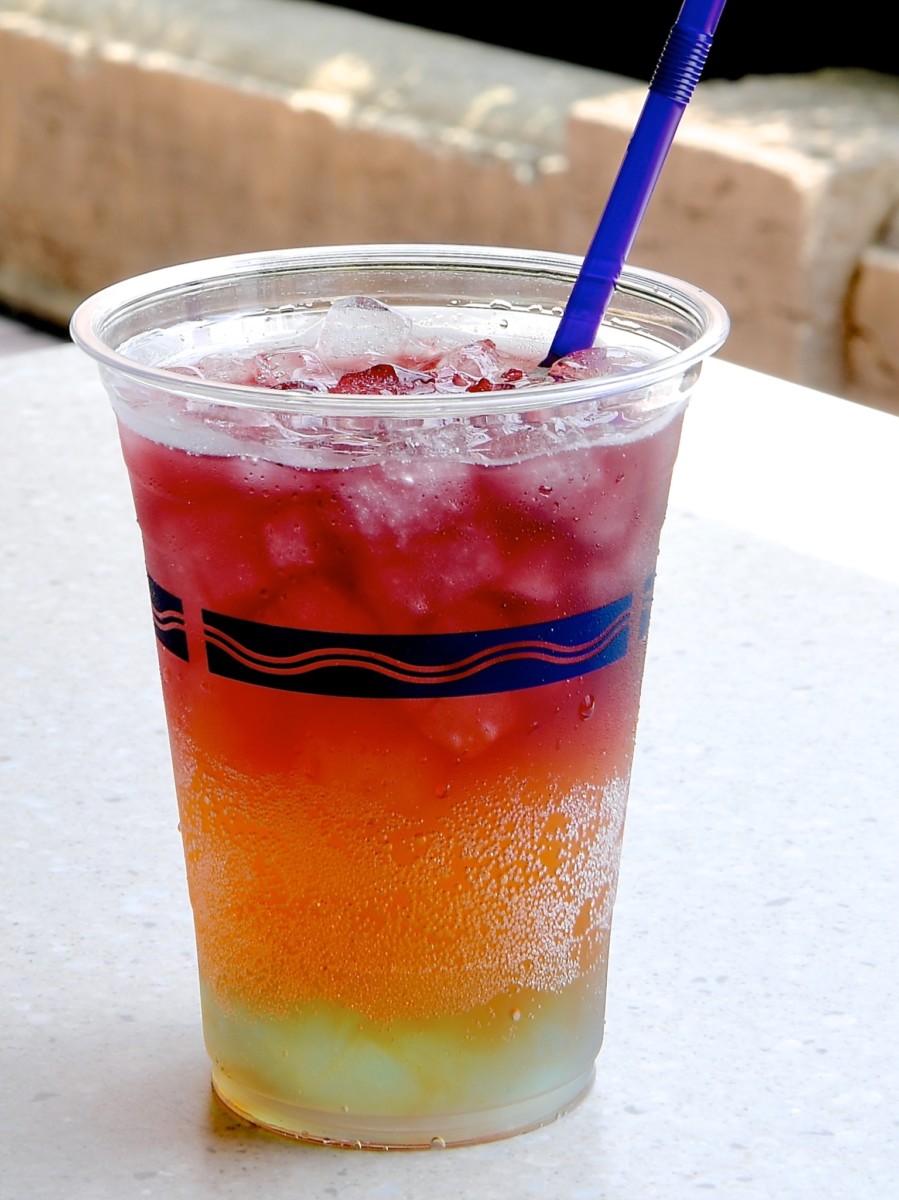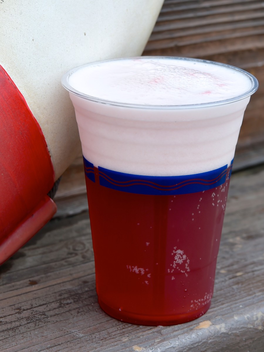 アメリカンウォーターフロントにある「バーナクル・ビルズ」では、真っ赤なカクテル「ビアカクテル(ざくろシロップ)」を提供。