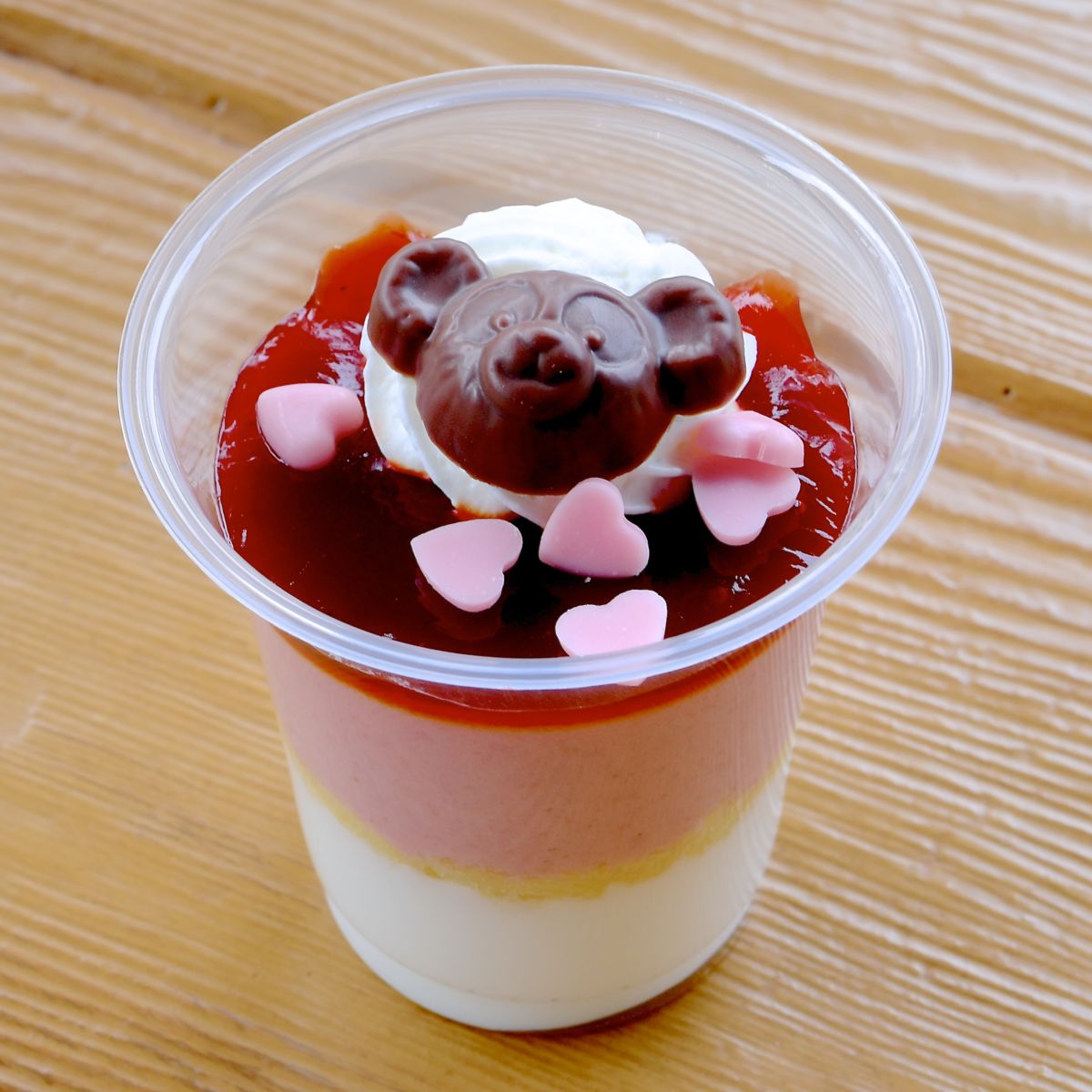デザートはダッフィーのお顔型チョコレートがトッピングされたストロベリー&ヨーグルトムース。