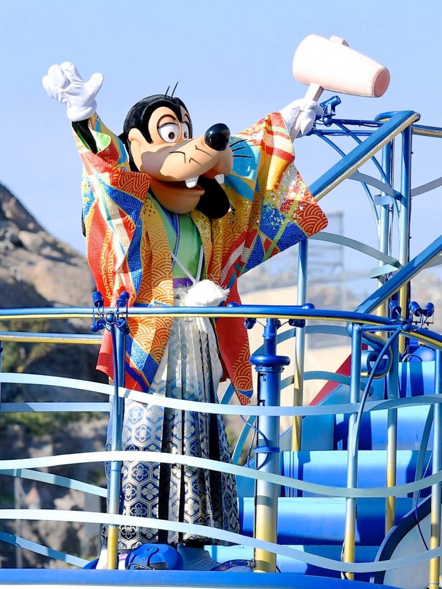 昨年、2018年の干支「戌年」の主役?グーフィーはオレンジの和服姿。
