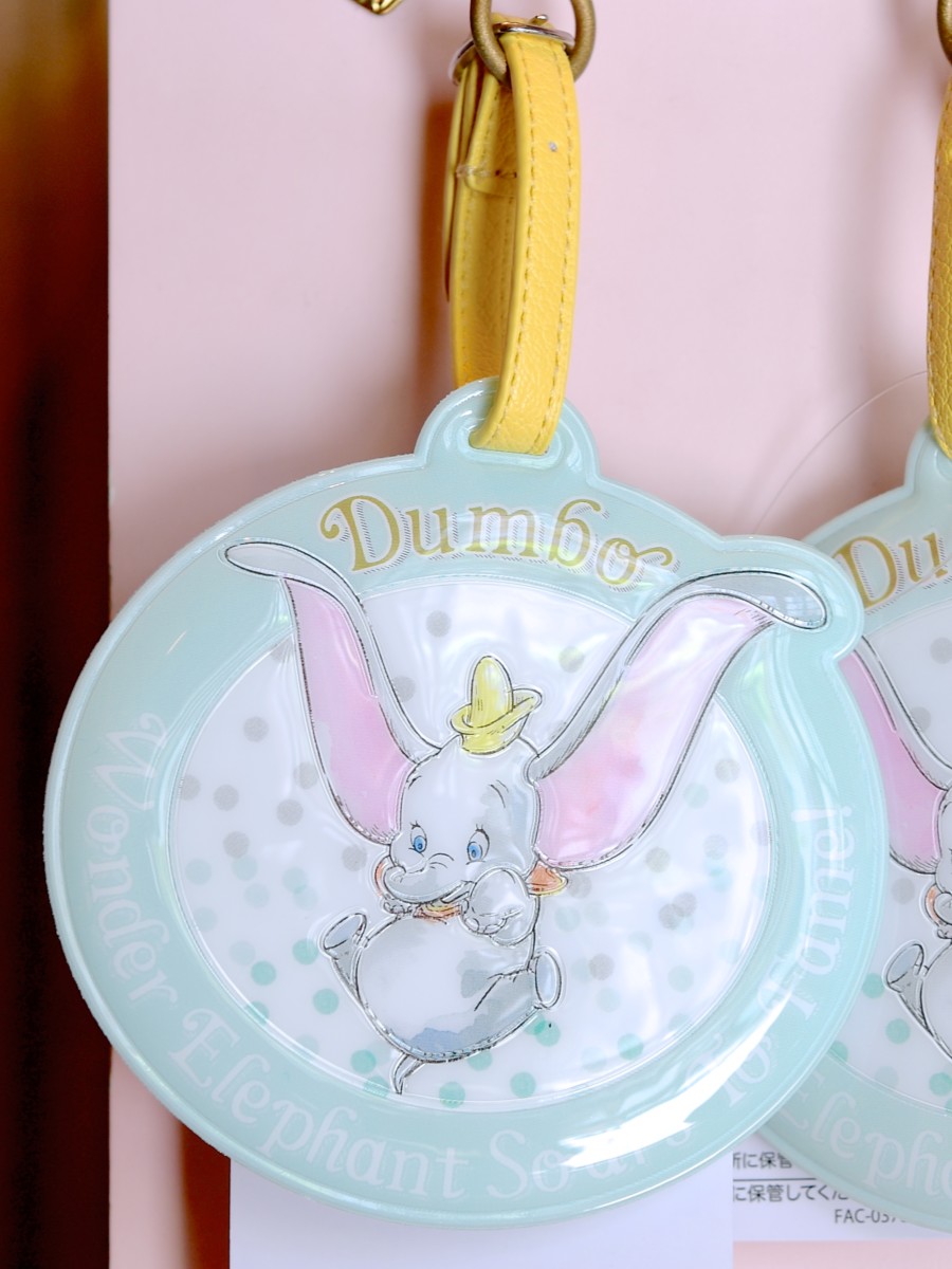 ふわふわ浮いているダンボがデザインされたかわいいラゲッジタグ。