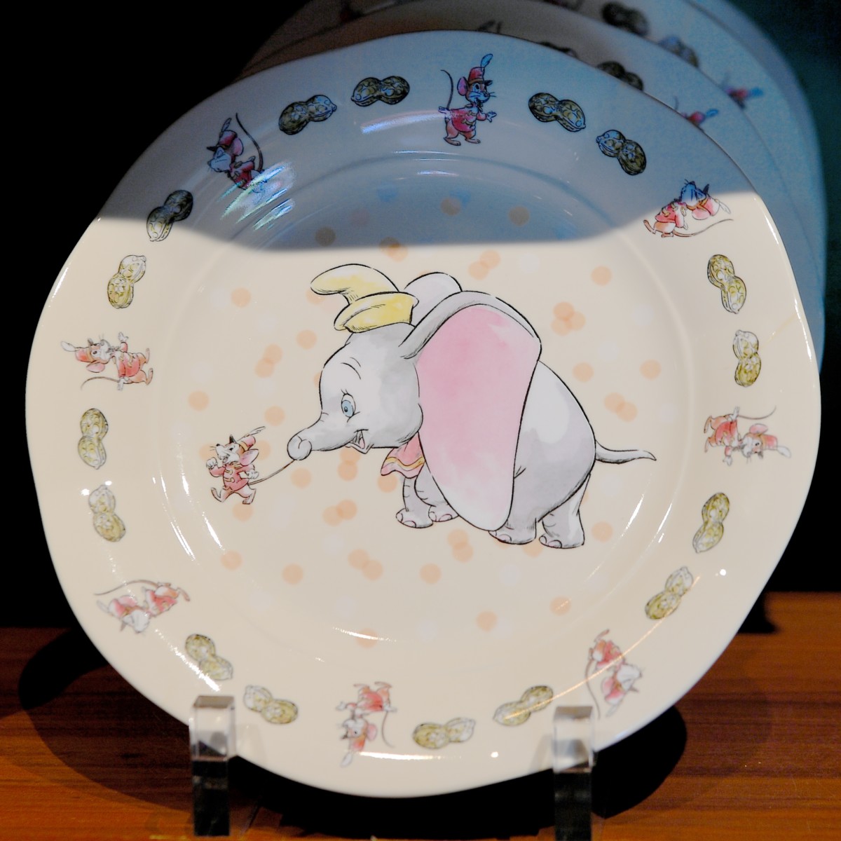ティモシー、ダンボ、ティモシーの好物のピーナッツが描かれたかわいいプレート。