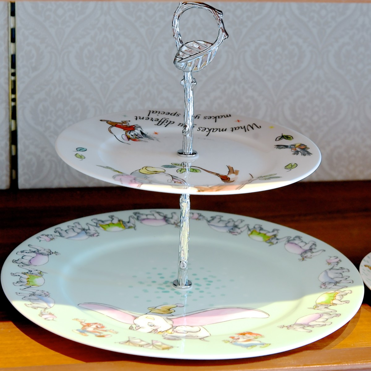 木の上で眠るダンボや空飛ぶダンボがデザインされたケーキスタンド。
