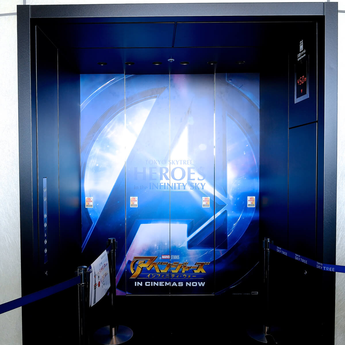 エレベータ内も「アベンジャーズ/インフィニティ・ウォー」のキャラクターたちが装飾されています。