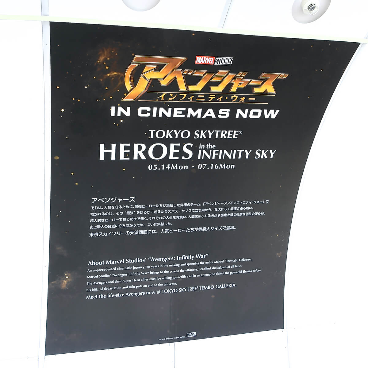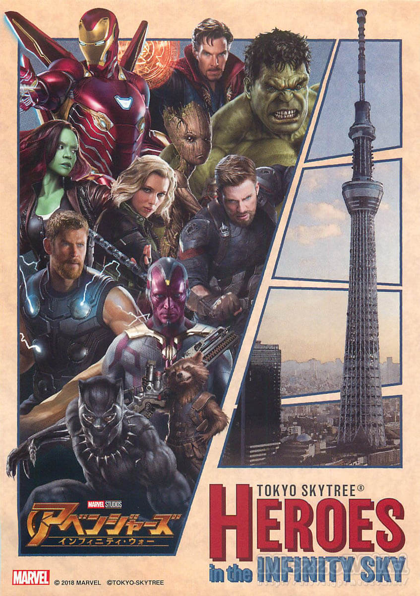 東京スカイツリーで、マーベル映画「アベンジャーズ/インフィニティ・ウォー」の公開を記念し、「TOKYO SKYTREE® HEROES in the INFINITY SKY」を開催!