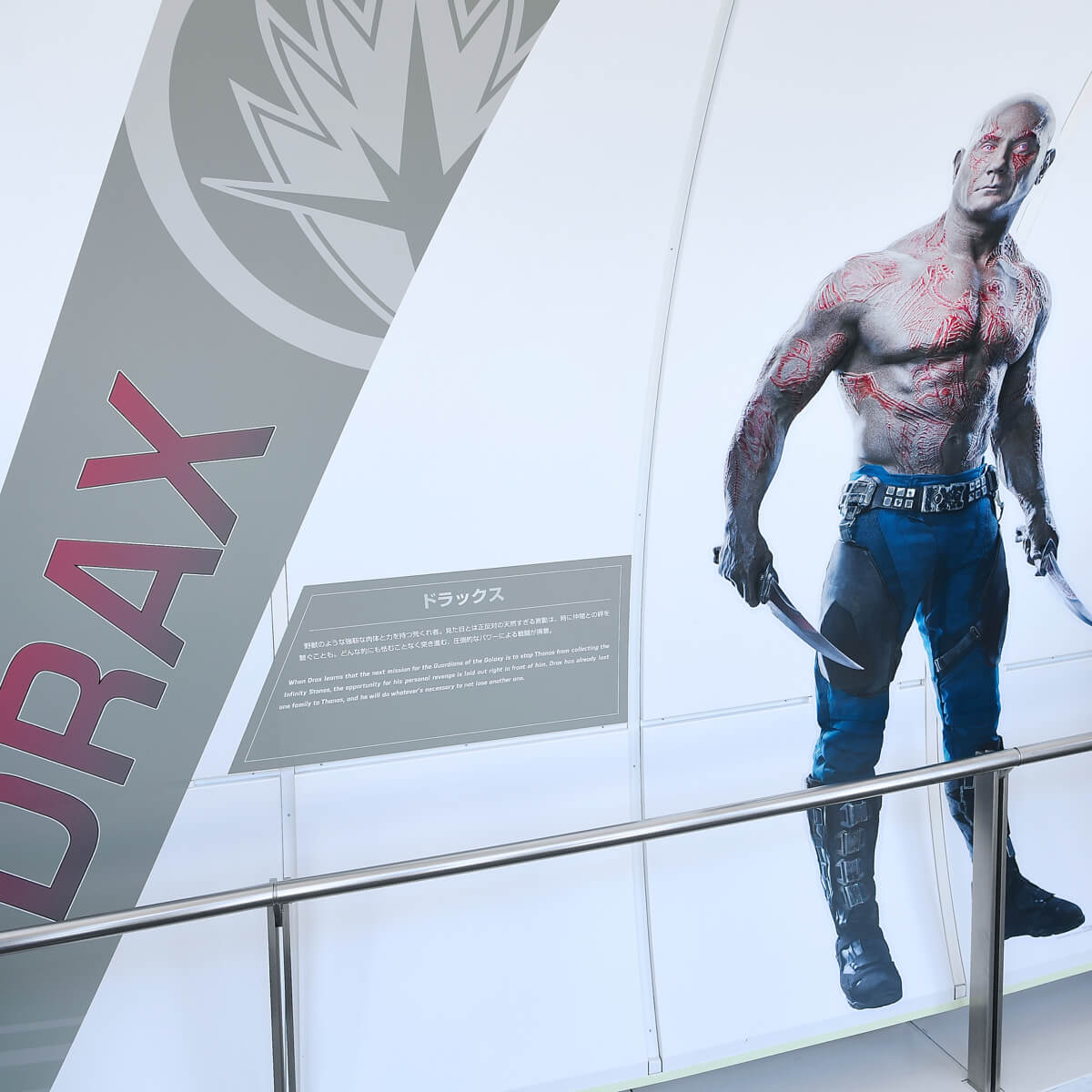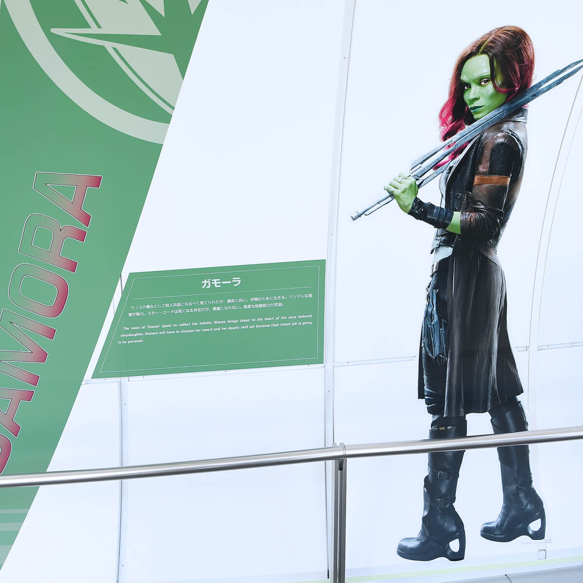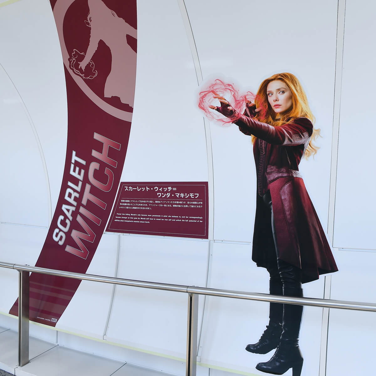 天望回廊の折り返しエリアには、映画「アベンジャーズ/ インフィニティ・ウォー」の作品紹介を中心にマーベル・ シネマティック・ユニバースの軌跡を紹介するウォールディスプレイが登場。