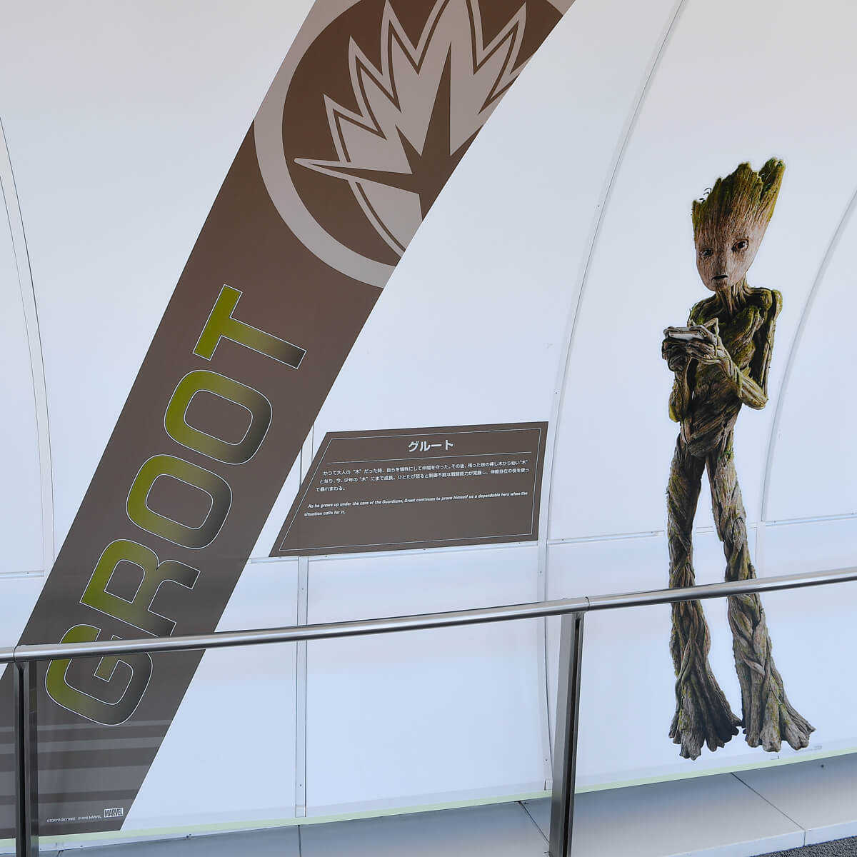 約110メートル続く天望回廊の壁面では、「アベンジャーズ/インフィニティ・ウォー」に登場する人気ヒーローたちを等身大のシートで紹介!