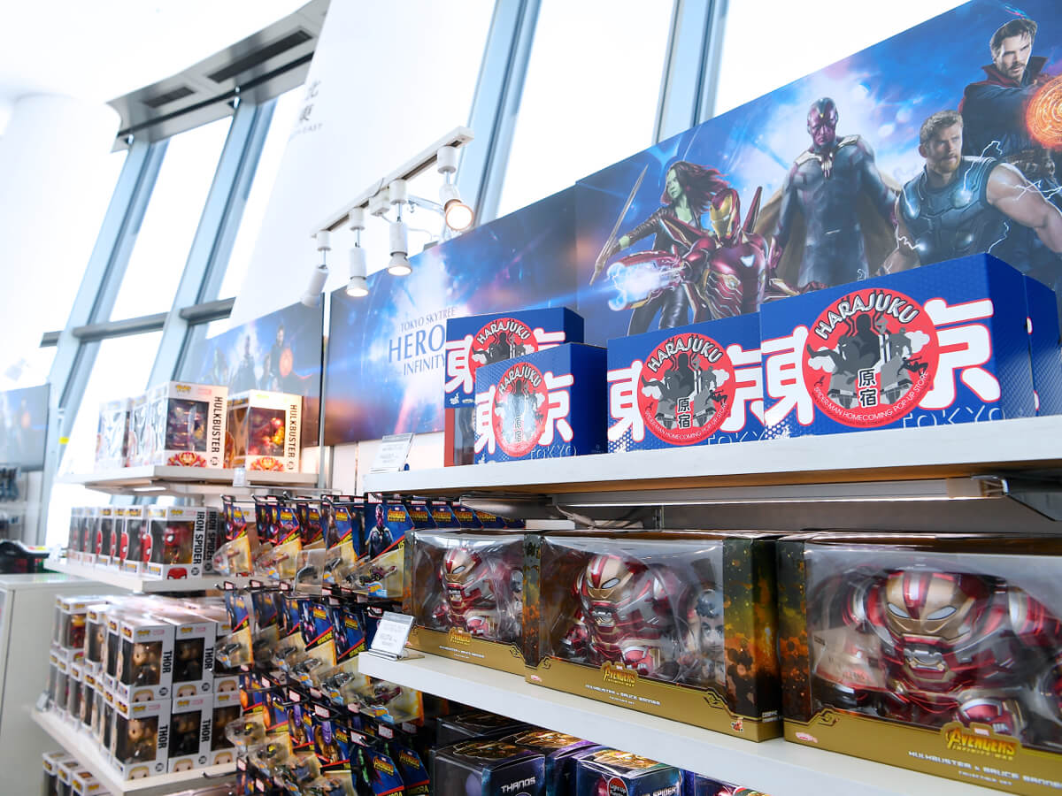 天望回廊フロア450の折り返し地点に「THE SKY TREE SHOP」のマーベル特設ショップがオープン。